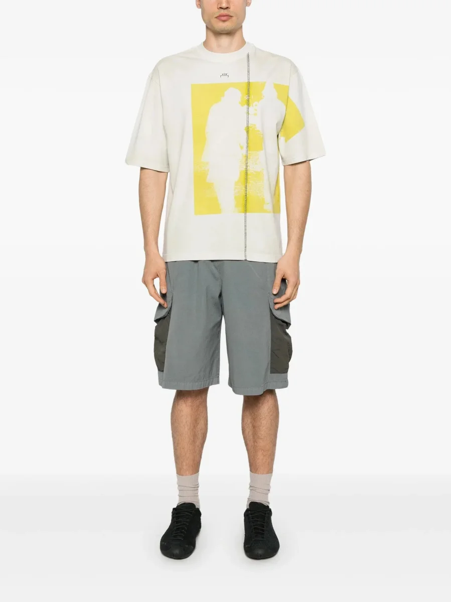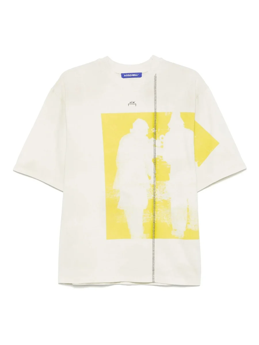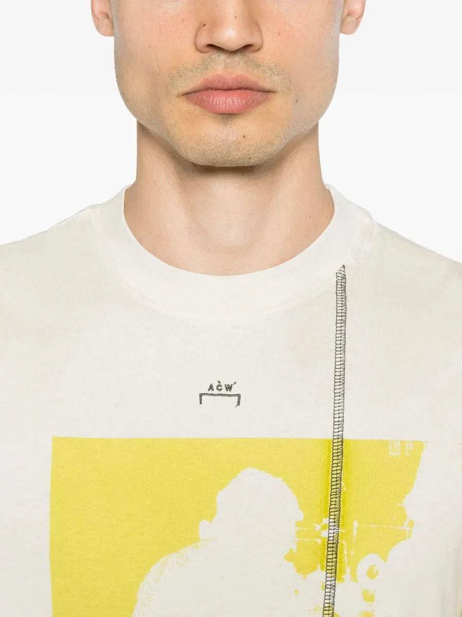 Maglietta girocollo con logo ricamato e cucitura sul fronte presenta una maxi stampa. 100% cotone. ACWMTS214.