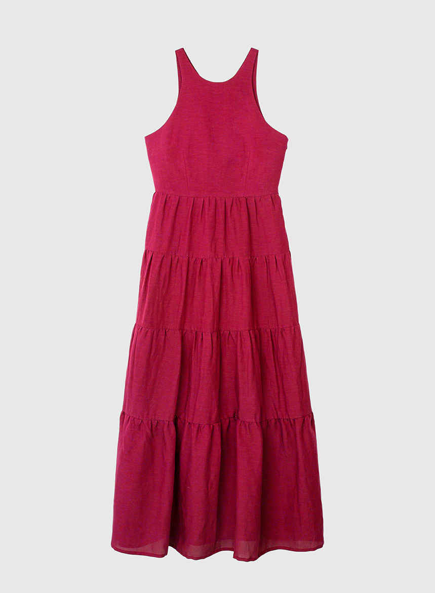 Abito Balze Viscosa e Lino – Rosso