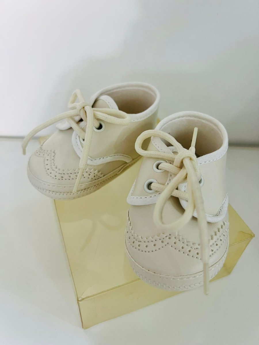 ALETTA SCARPETTE NEONATO ALETTA SCARPETTE NEONATOย modello sneakers con lacci, SIMILPELLE. colore: avorio taglia: dal 16 al 20