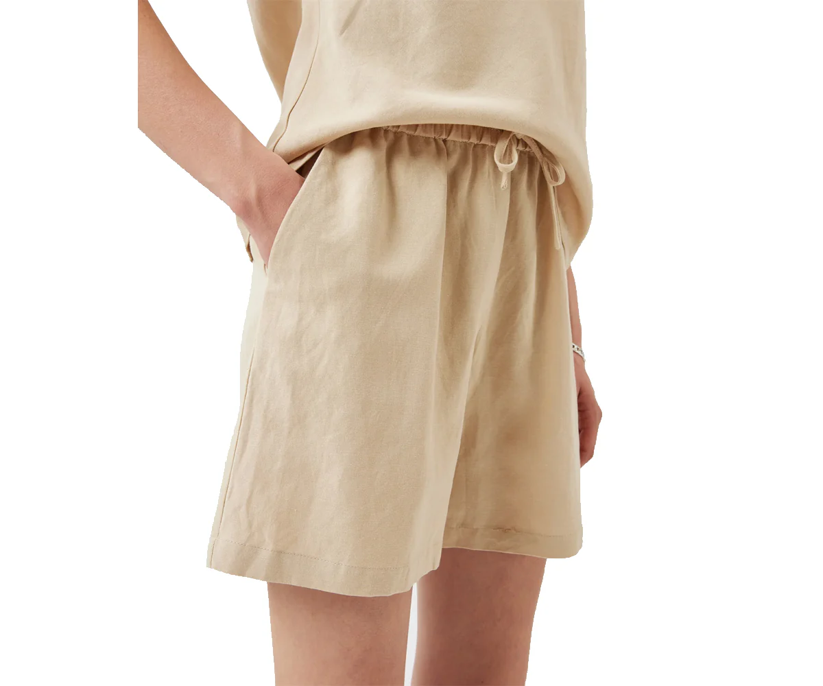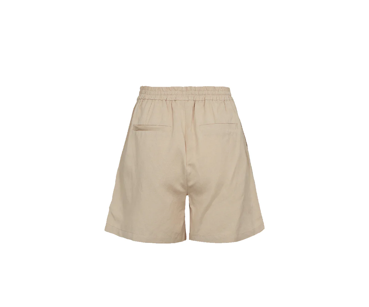 Amilie รจ un paio di pantaloncini casual realizzati in lino e viscosa per una qualitร morbida e piacevole. I pantaloncini hanno una vestibilitร semplice e presentano lacci in vita e due tasche laterali.