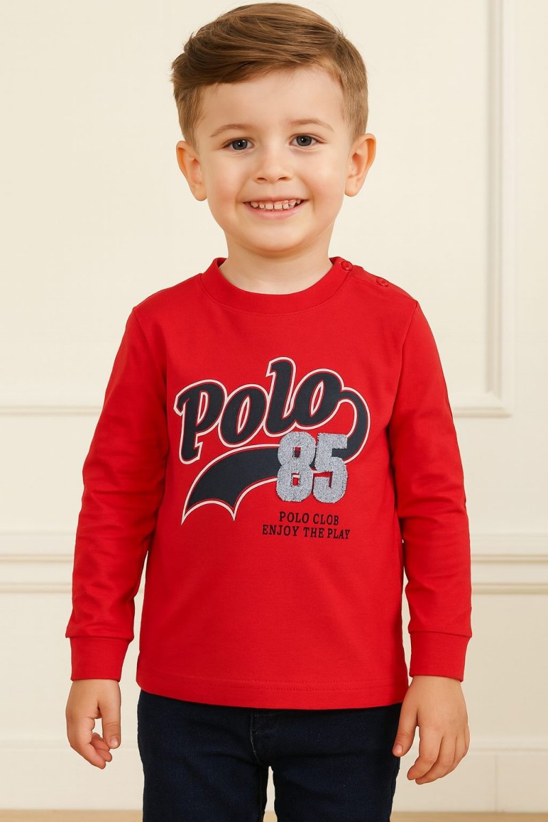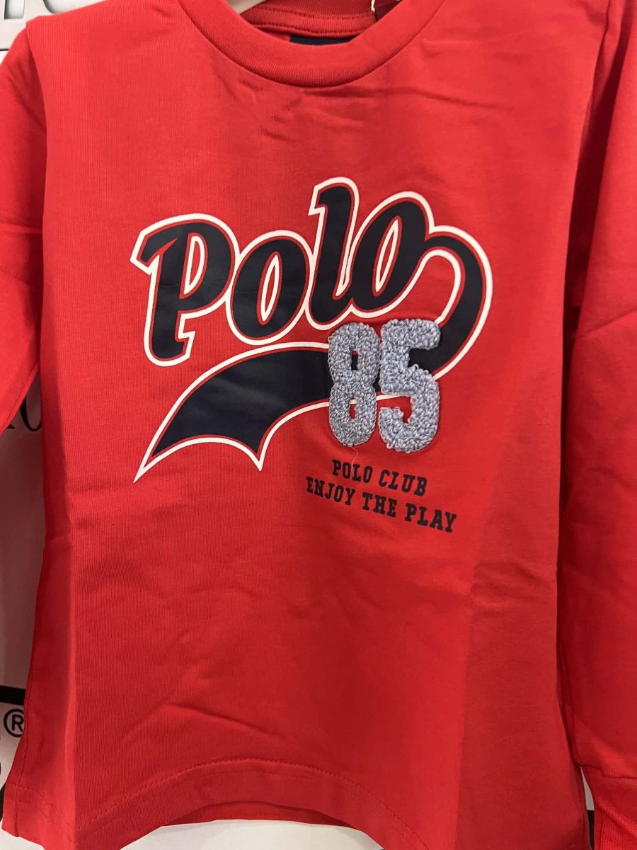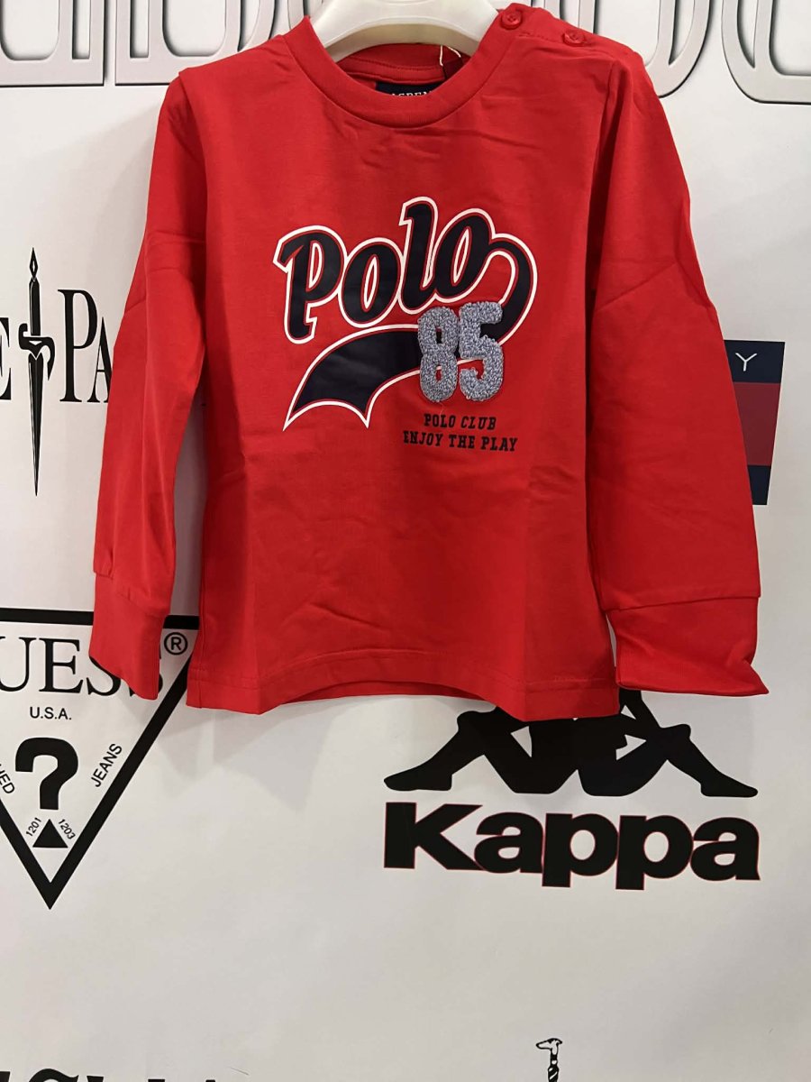 ASPEN POLO T-SHIRT ASPEN POLO T-SHIRT girocollo e manica lunga, stampa centrale in grande. polsino Colore: rosso composizione:ย  cotoneย  elastico taglia: dalla 9 mesi alla 7 anni