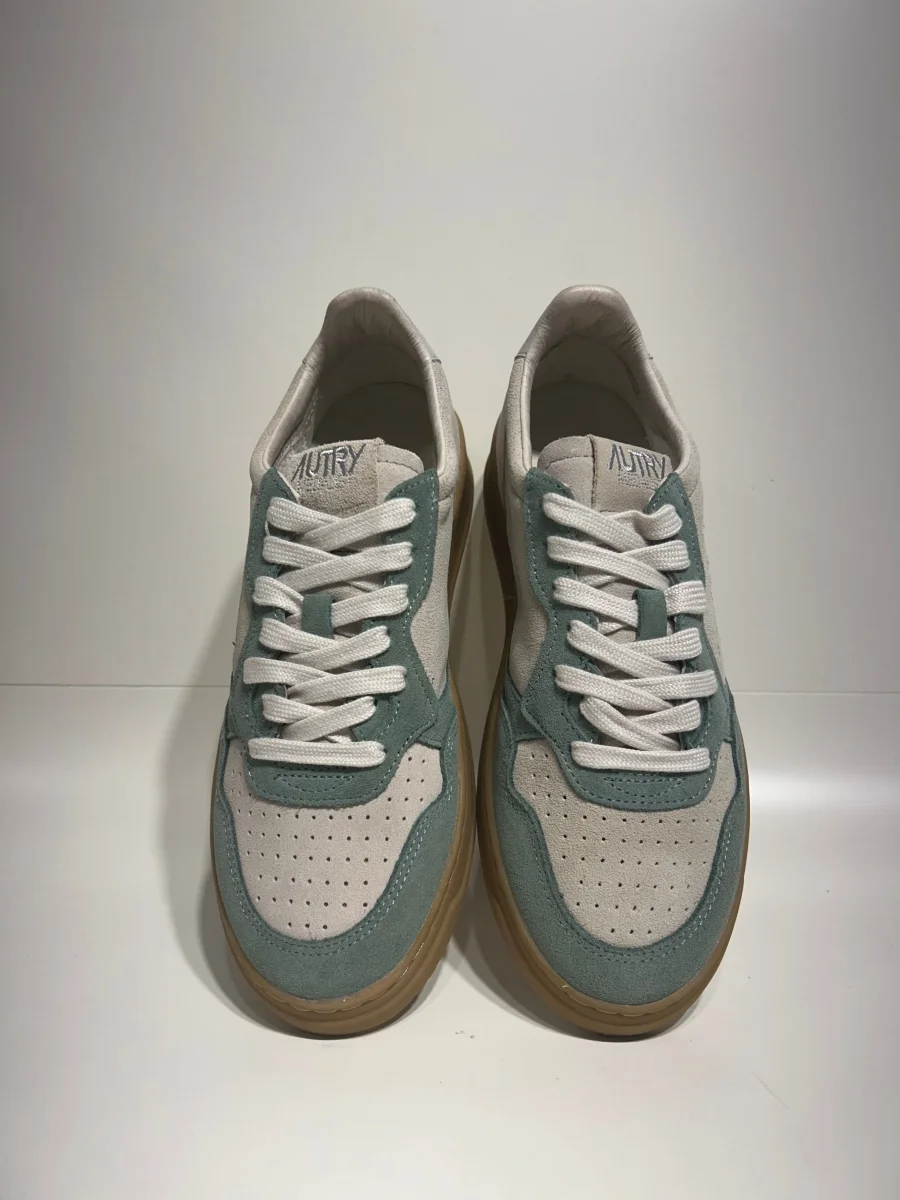 Medalist in pelle suede con colori in contrasto beige e verde. Logo cucito sulla linguetta e suola rialzata di 2 cm AULM XS21.