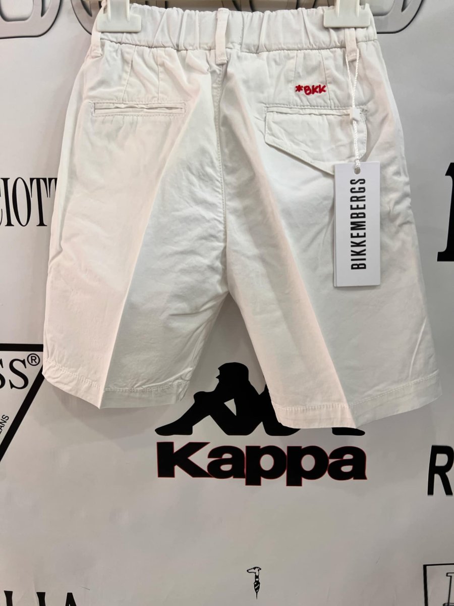 BIKKEMBERGS BERMUDA BIKKEMBERGS BERMUDA chiusura con zip e bottone, vita elastica. logo. tasche taglia: 4 anni alla 16 anni Composizione: cotone ed elastico Colore: bianco