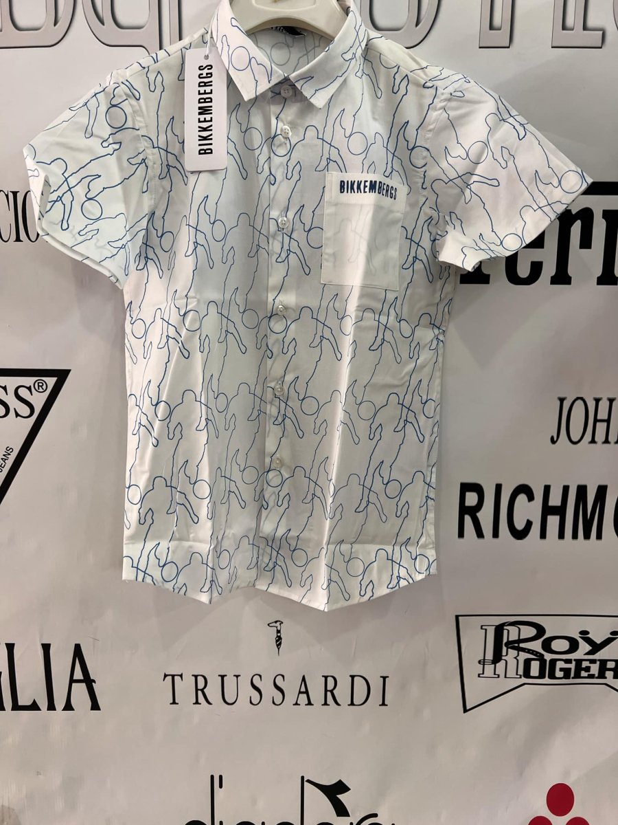BIKKEMBERGS CAMICIA BIKKEMBERGS CAMICIA mezza manica e chiusura con bottoni. interamente in logo. taglia: 8 anni alla 16 anni Composizione: PRIMAVERA/ESTATE cotone Colore: bianco