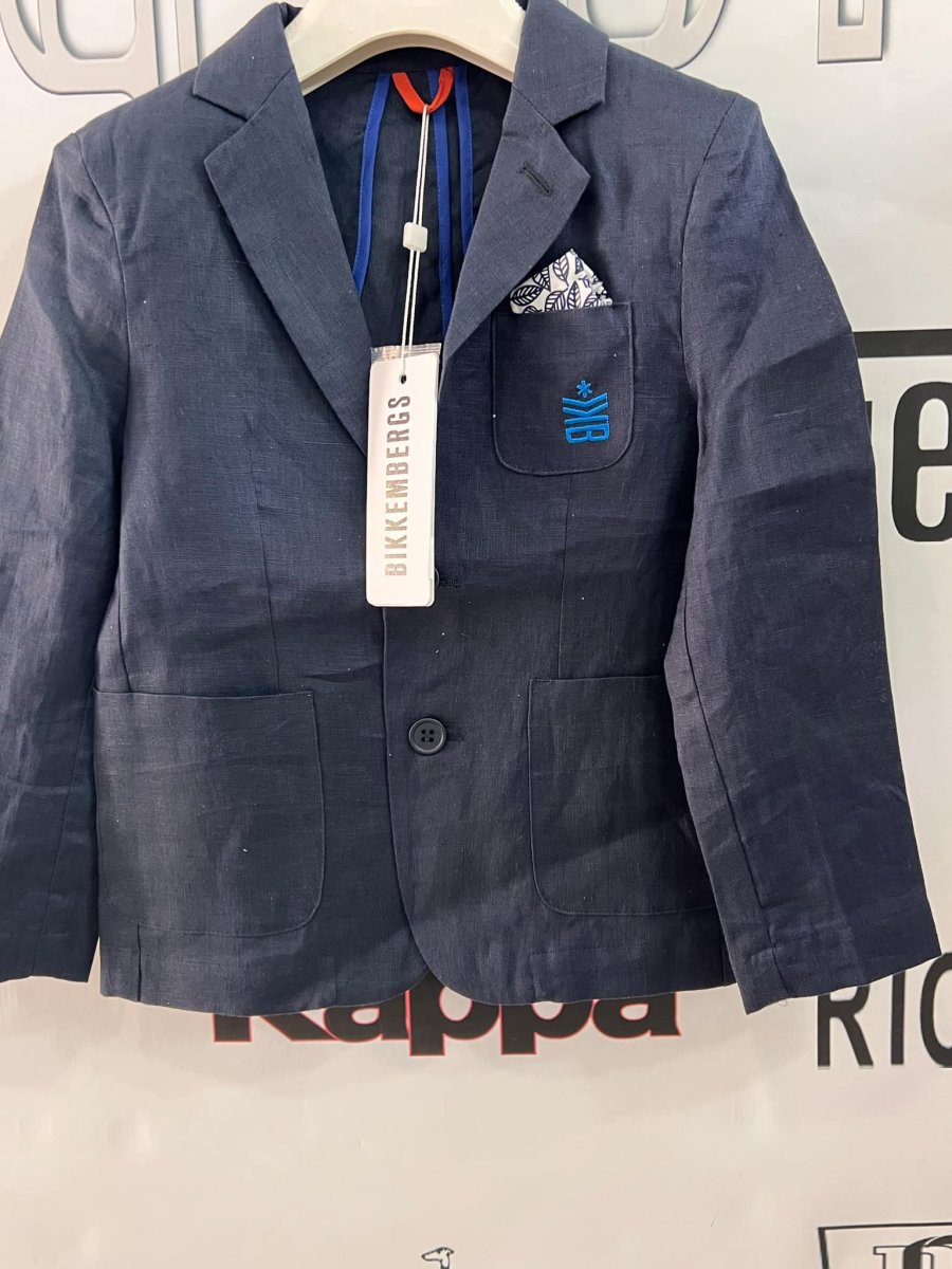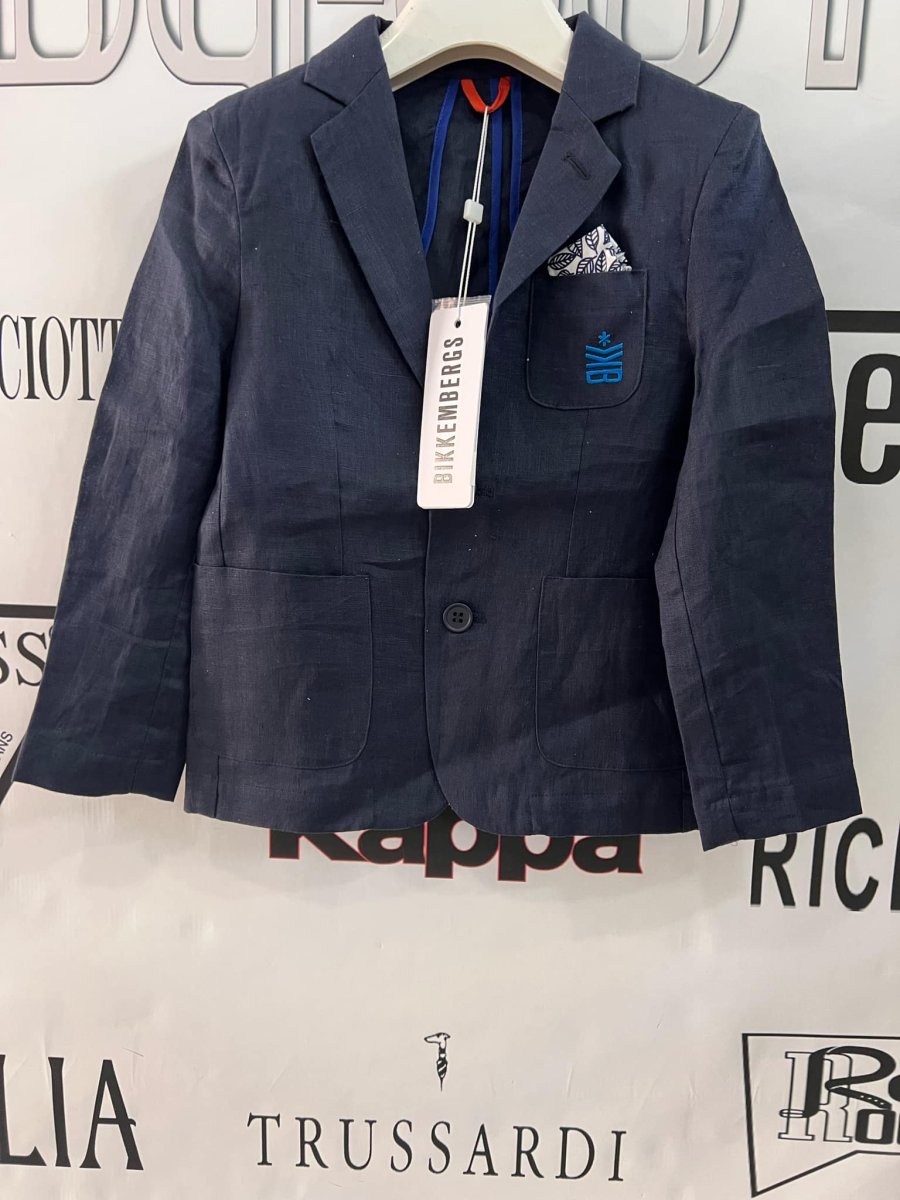 BIKKEMBERGS GIACCA BIKKEMBERGS GIACCA chiusura con Bottone. logo. taschino taglia: 5 anni alla 16 anni Composizione: PRIMAVERA/ESTATE cotone e lino Colore: blu