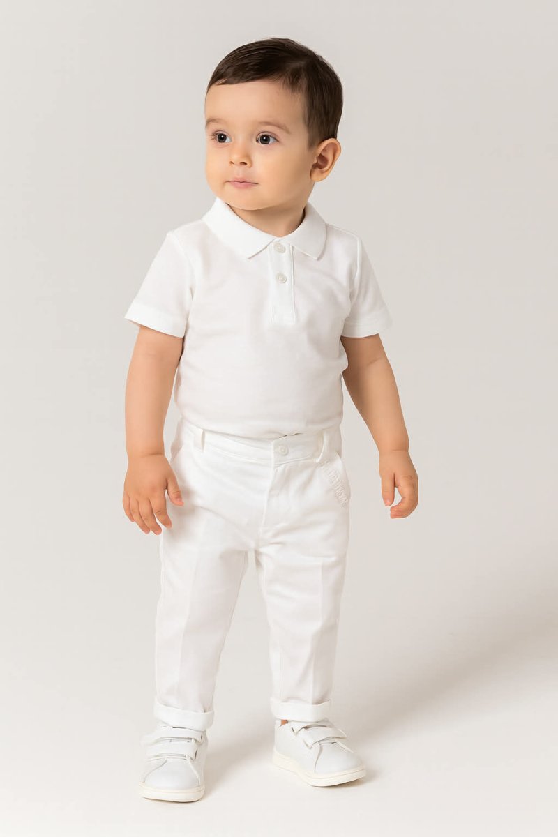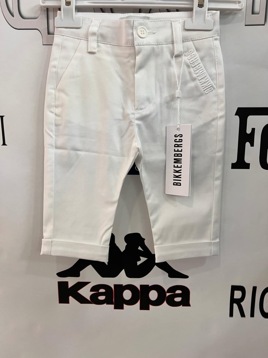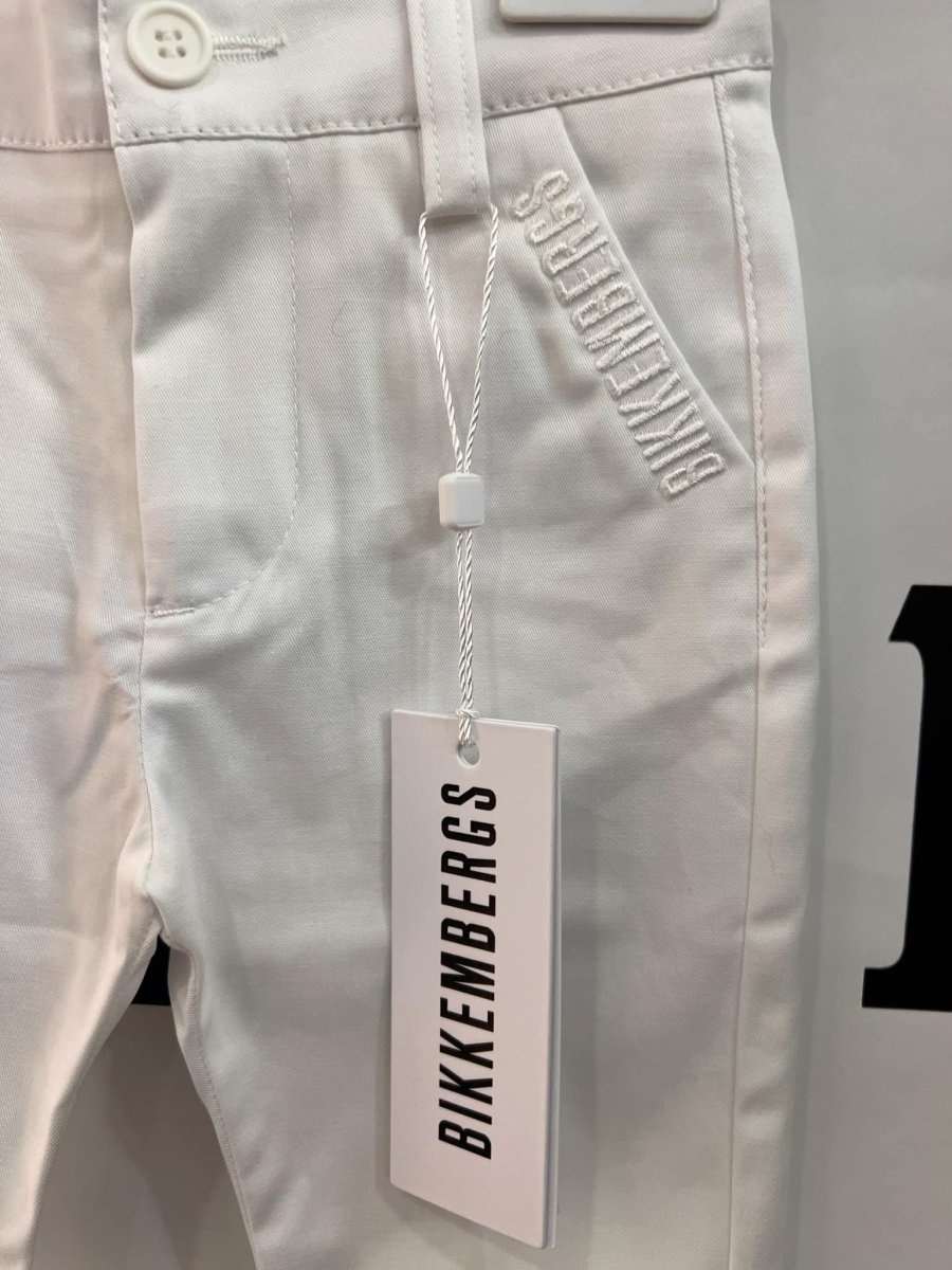 BIKKEMBERGS PANTALONE BIKKEMBERGS PANTALONE chiusura zip e bottone elastico all’interno per stringere. logo ricamato taglia: 6 mesi alla 6 anni Composizione: PRIMAVERA/ESTATE cotone Colore: bianco