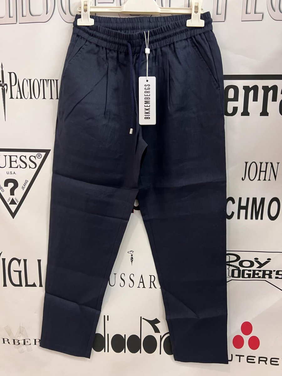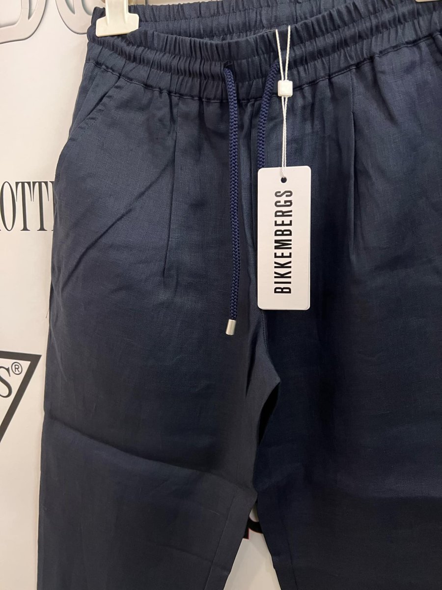 BIKKEMBERGS PANTALONE BIKKEMBERGS PANTALONE elastico in vita con laccio. tasche. logo. taglia: 8 anni alla 16 anni Composizione: cotone e lino Colore: blu