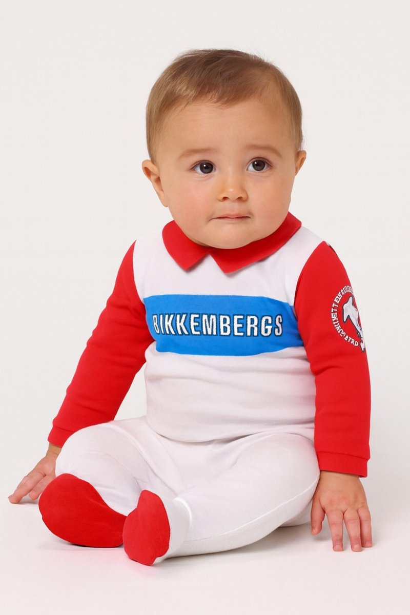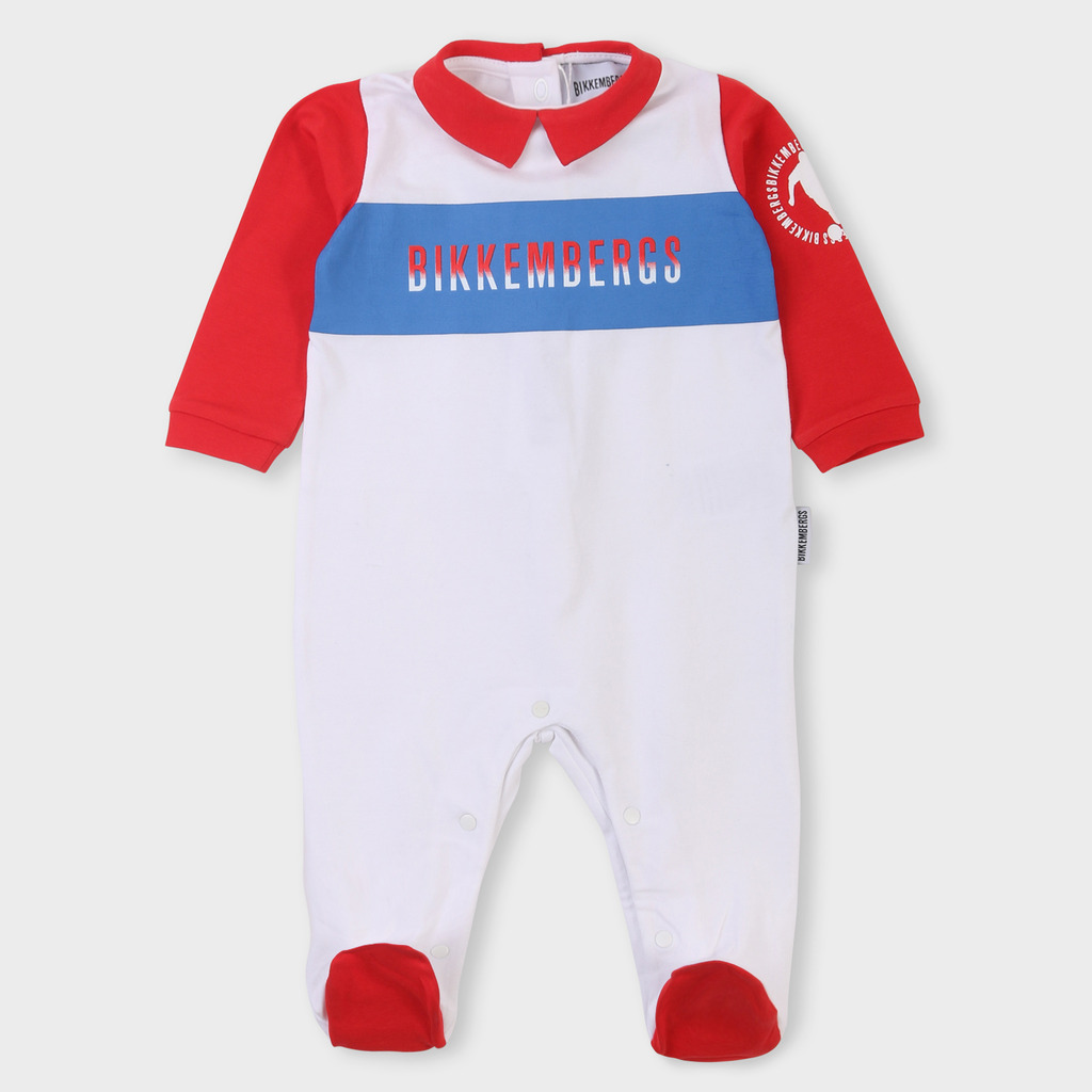BIKKEMBERGS TUTINA BIKKEMBERGS TUTINA colletto a polo e piedino coperto. chiusura sul retro con bottoncini a clips. Logo centrale e sul lato braccio. PESO: PRIMAVERA/ESTATE taglia: 1 mese, 3 mesi, 6 mesi Composizione: cotone PRIMAVERA/ESTATE Colore: bianco/rosso/azzurro