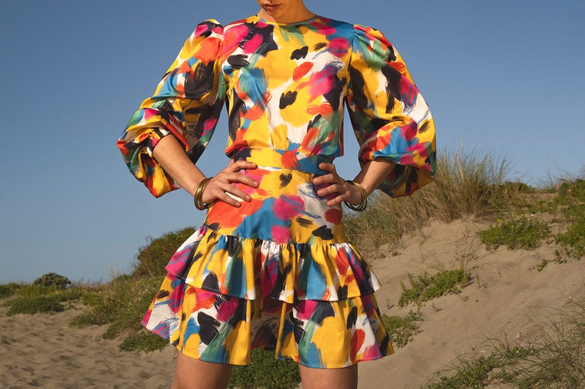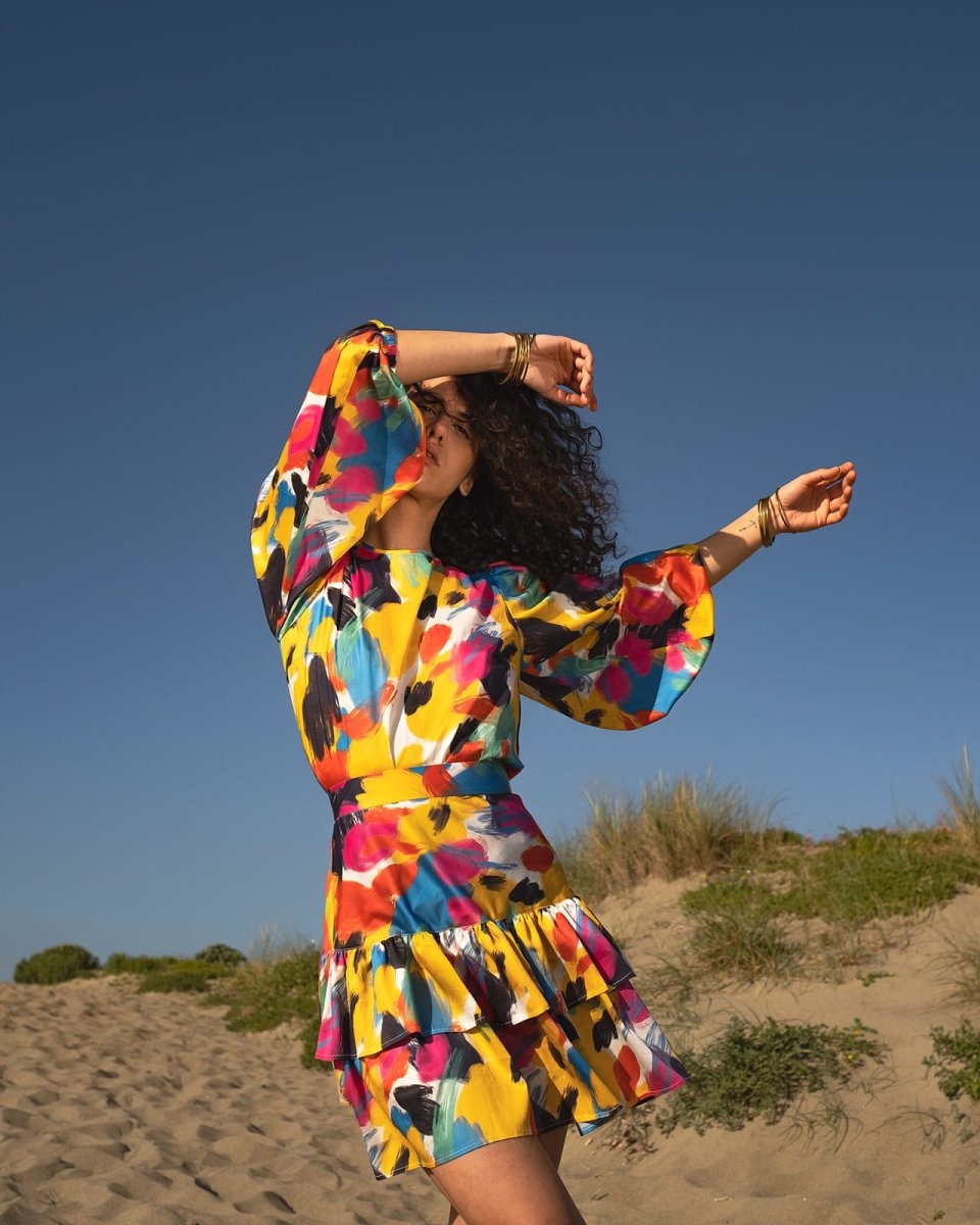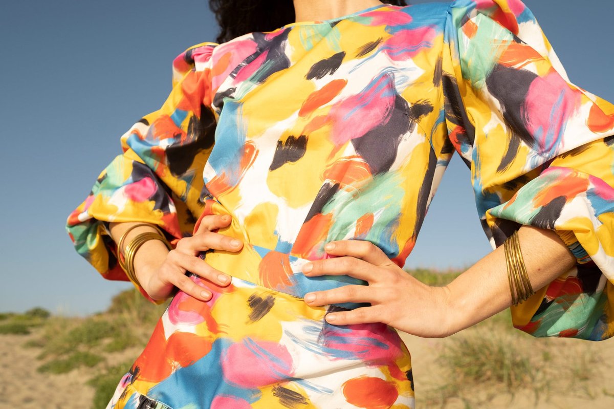 Blusa con maniche a sbuffo fantasia multicolor