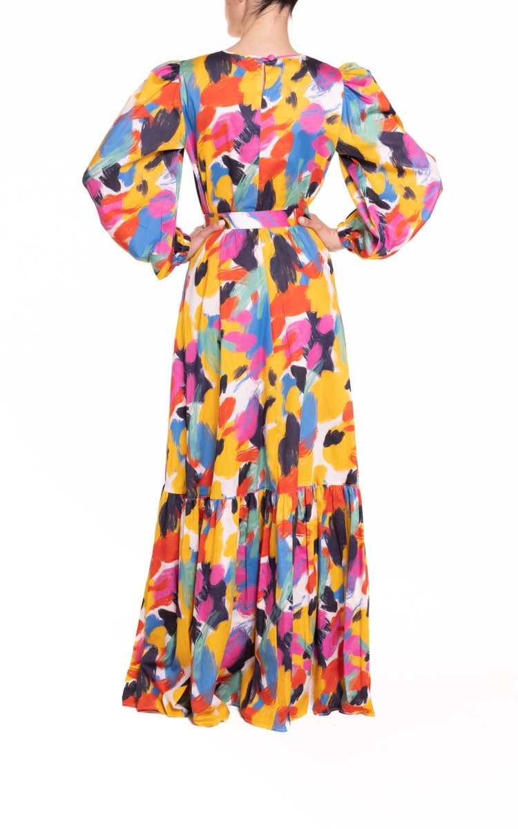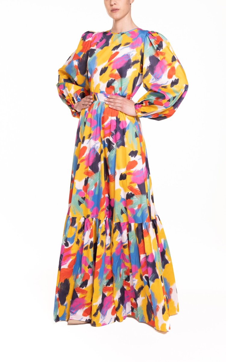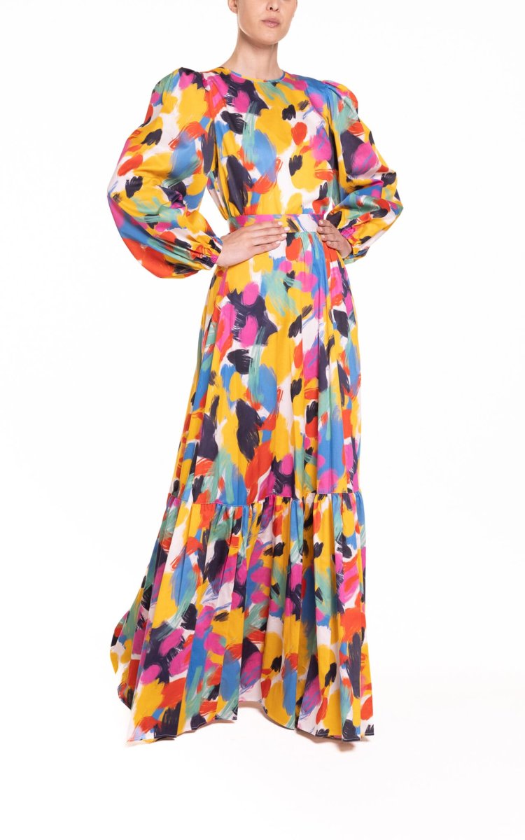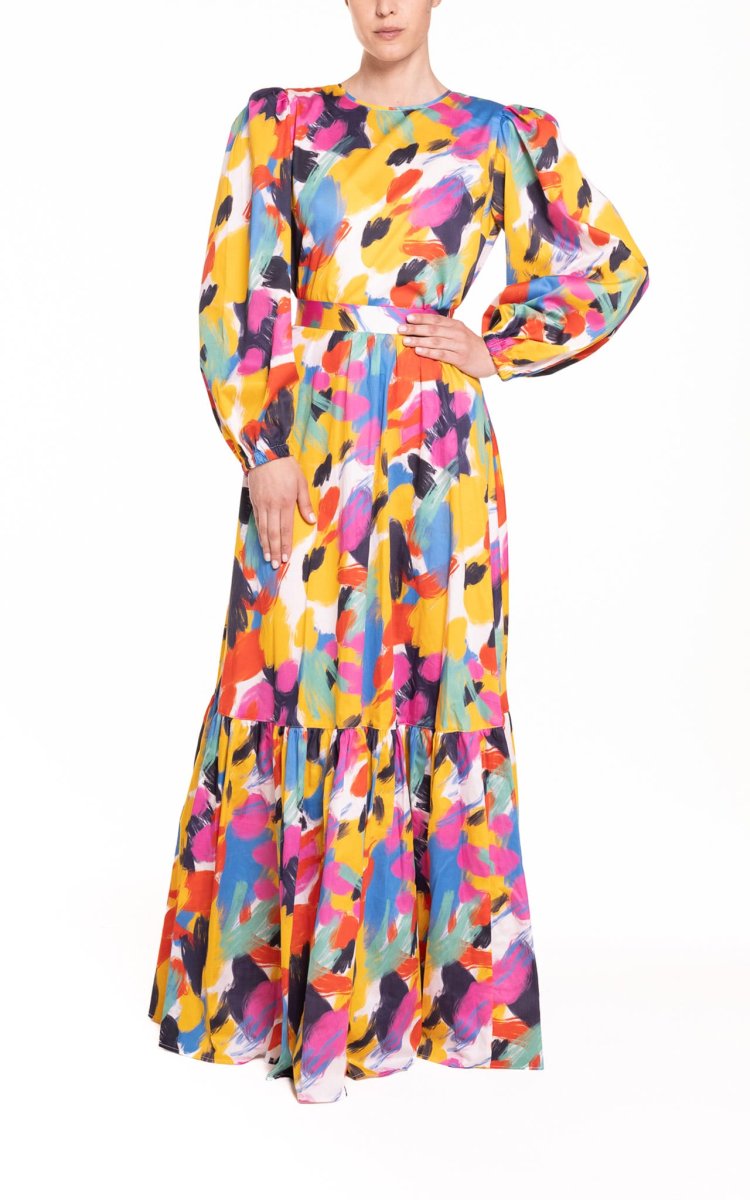 Blusa con maniche a sbuffo fantasia multicolor