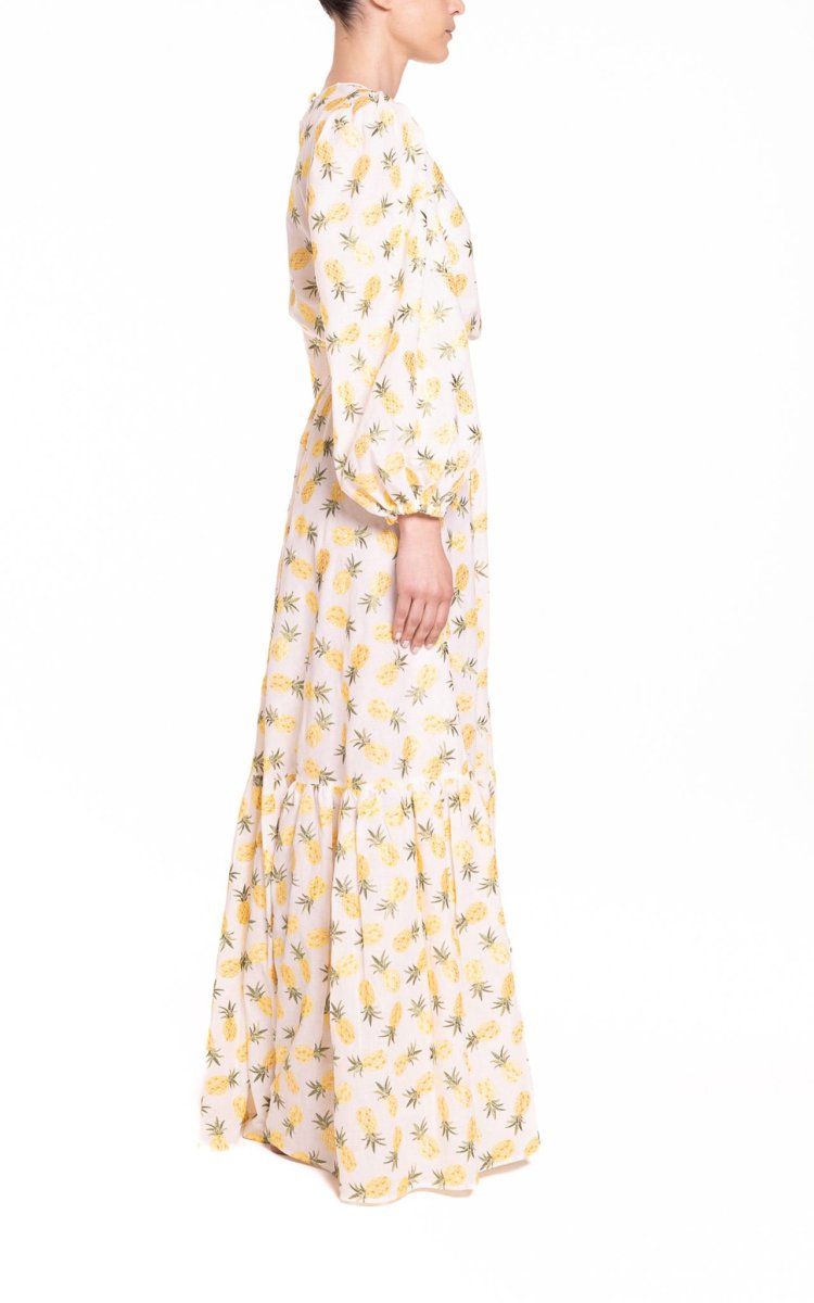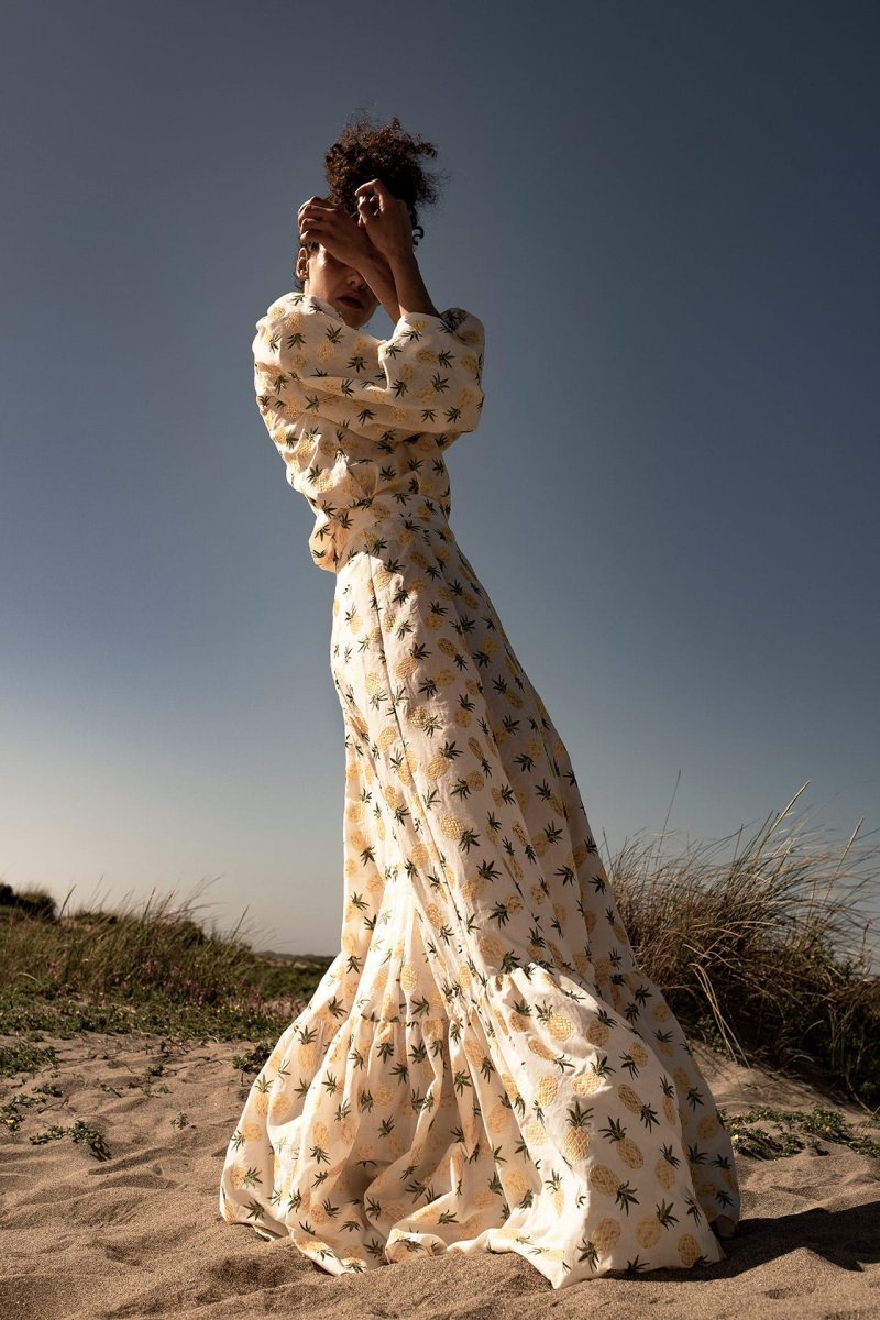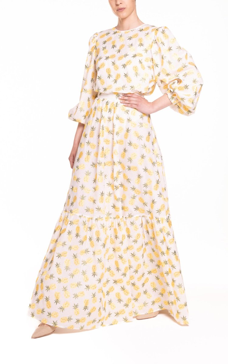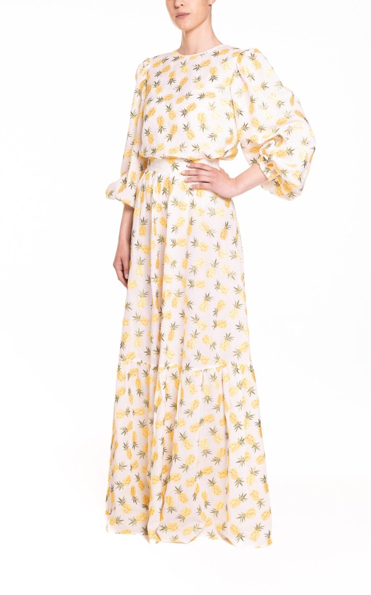 Blusa fantasia con maniche a sbuffo ricamo con ananas