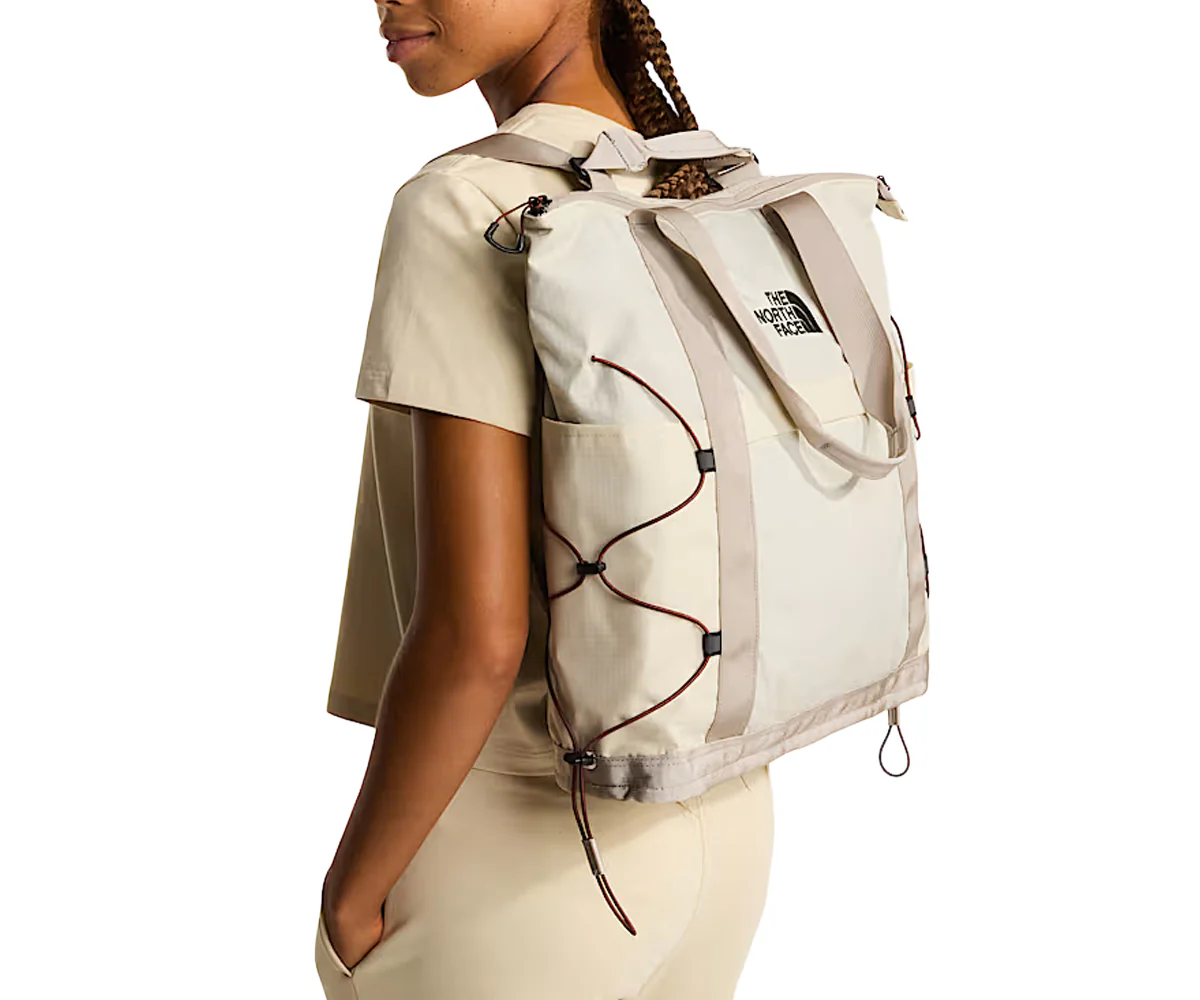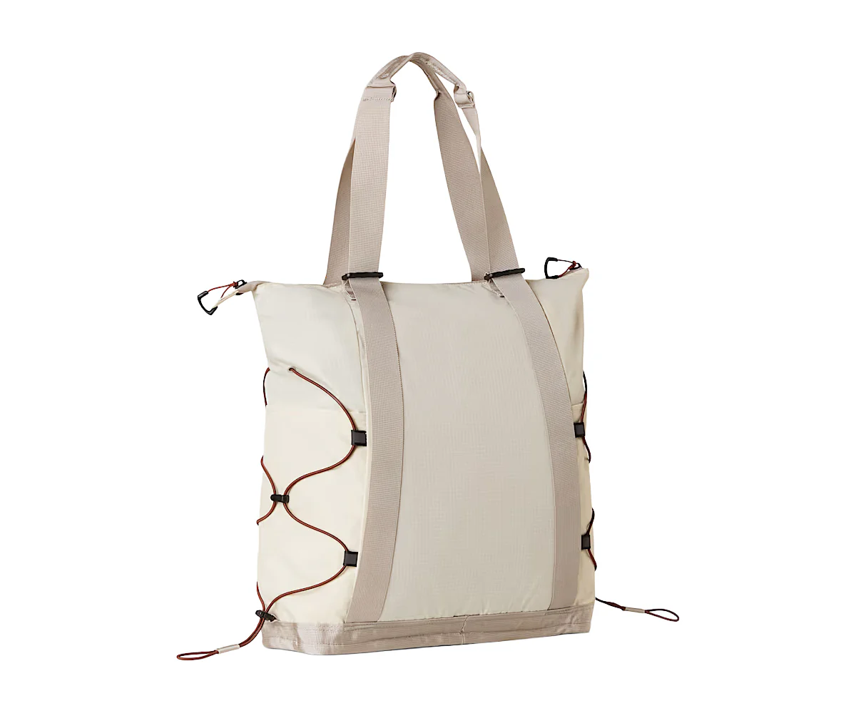 Ispirata allo zaino Borealis, questa borsa tote include alcuni dettagli riconoscibili dello zaino, come i cordoncini elastici esterni per legare i tuoi oggetti, tenendoli al sicuro. Ha anche due porta borracce laterali, uno scomparto imbottito per laptop e un pratico design autoportante. Include numerose funzioni dello zaino Borealis, ma senza essere uno zaino.