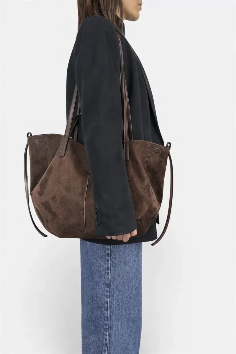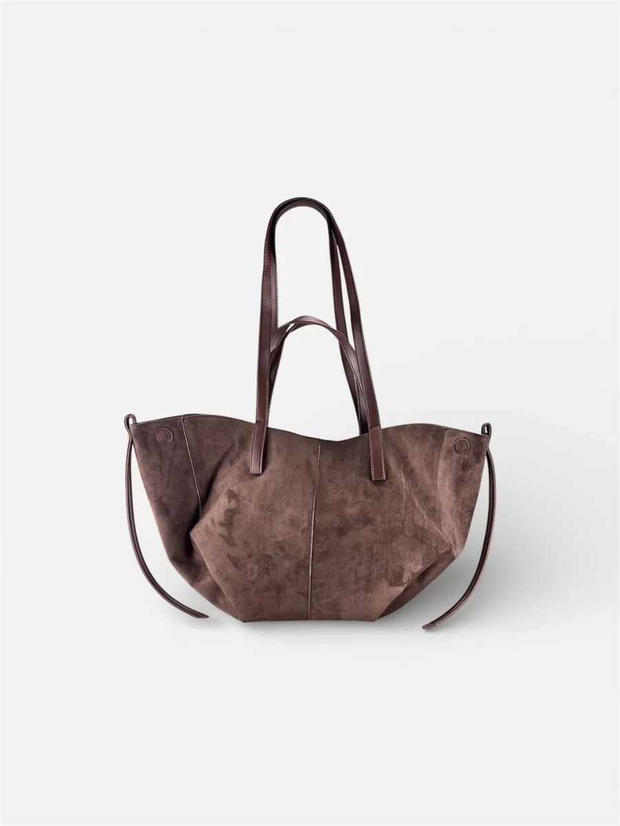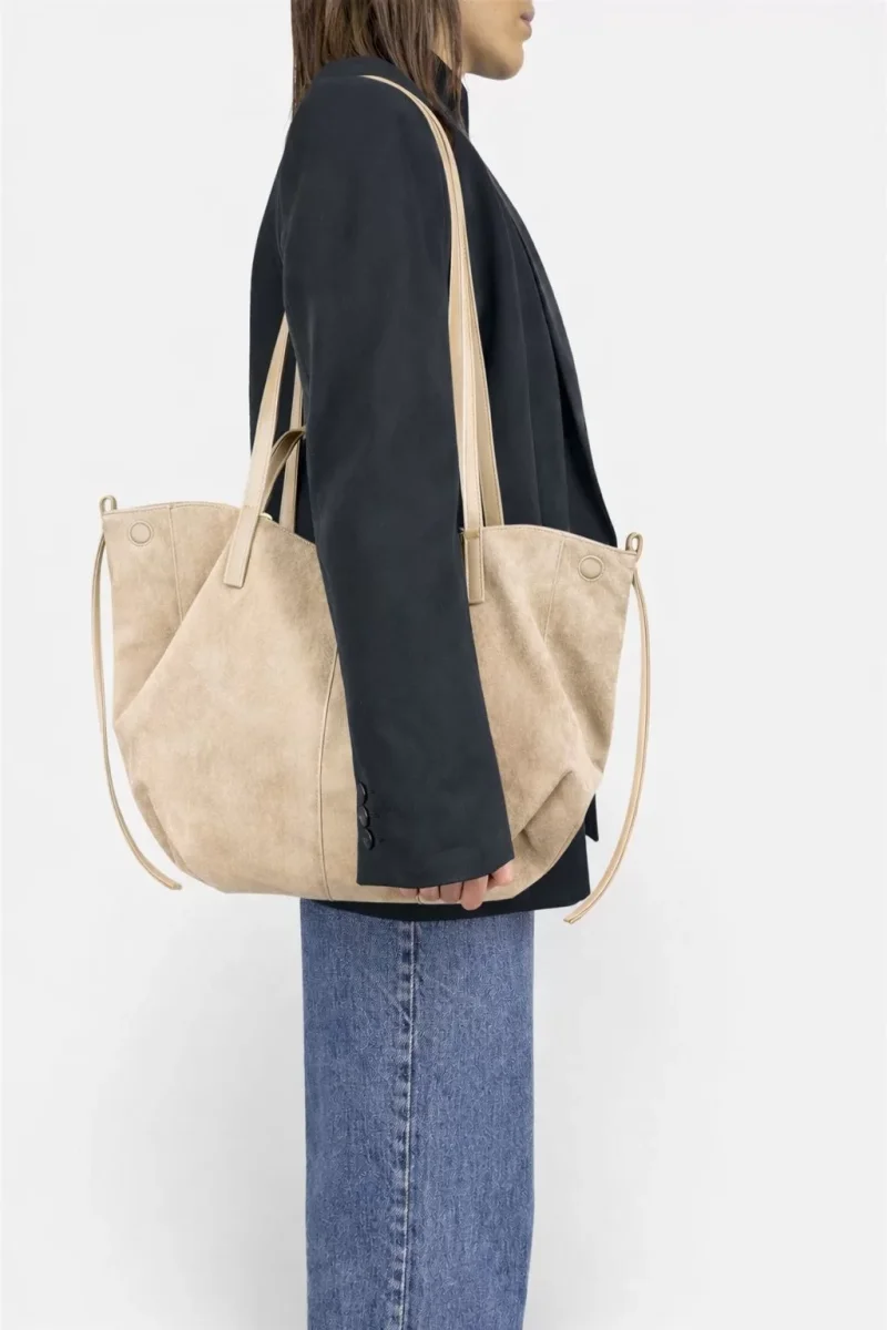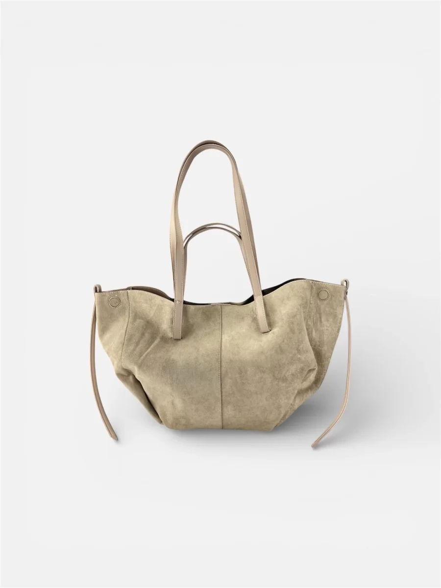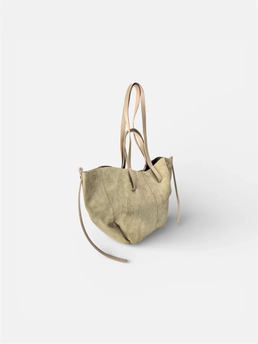 Design a Trapezio:ย Una forma fluida e capiente che si adatta al contenuto, offrendo un look rilassato ma curato. Materiale Premium:ย Realizzata in morbida eco-suede di alta qualitร , una scelta consapevole che non rinuncia alla morbidezza e alla resistenza del vero camoscio. Chiusura Pratica:ย Scomparto principale dotato di un discretoย bottone magnetico a pressione, per un accesso rapido e sicuro ai tuoi essenziali. Dettagli di Stile:ย Caratterizzata da cuciture verticali a vista che ne slanciano la linea e sottili laccetti laterali decorativi che aggiungono un movimento dinamico alla silhouette. Portabilitร :ย I doppi manici lunghi in ecopelle coordinata sono progettati per una comoda vestibilitร a spalla, rendendola…