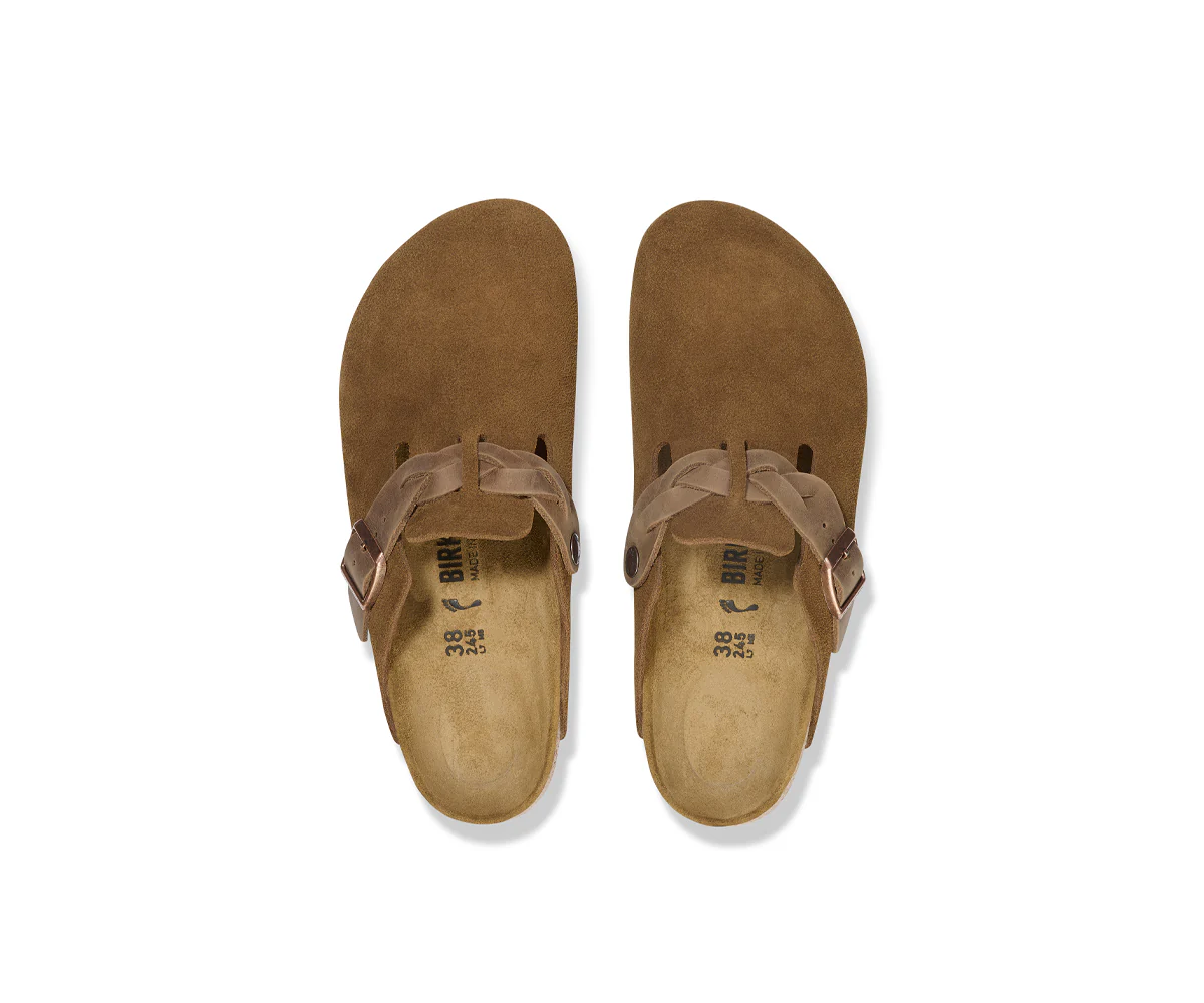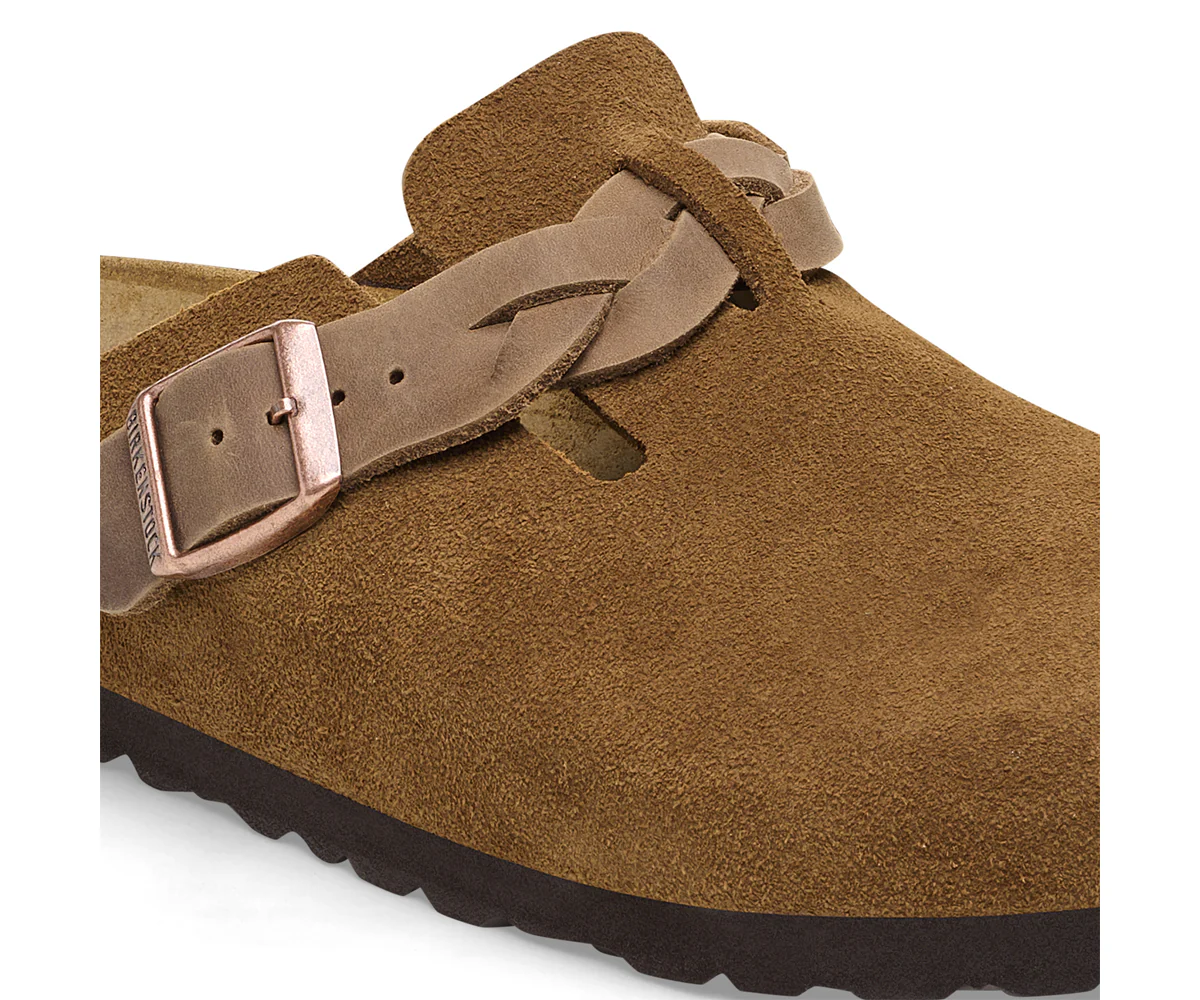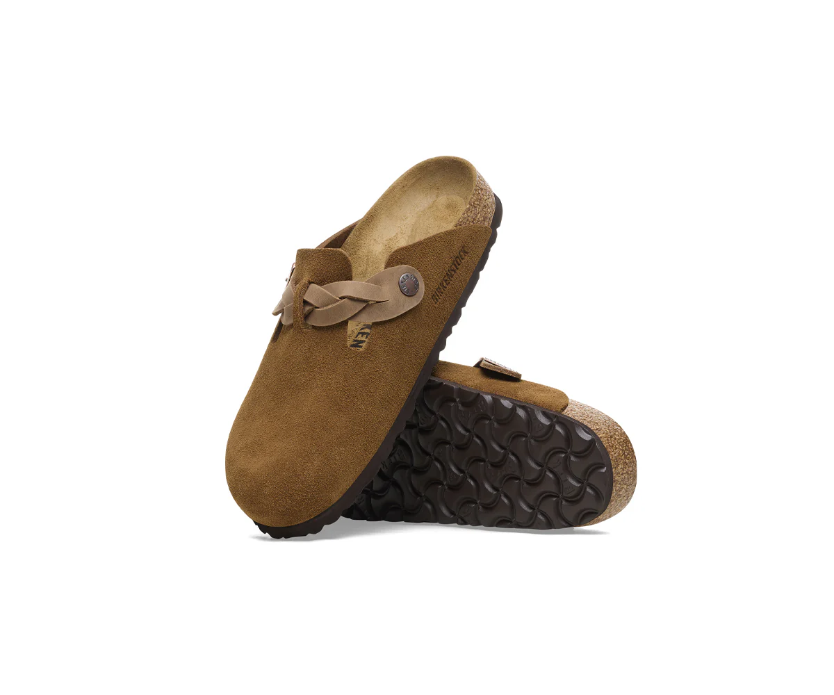 BIRKENSTOCK Boston sono un vero classico da indossare facilmente durante tutto lโanno. Sono regolabili individualmente e il loro design raffinato li ha resi delle vere e proprie leggende. Qui il modello si presenta con un dettaglio particolare: i cinturini sono lavorati con motivo a intreccio e sono perfetti per i moderni stili boho. La tomaia รจ composta da pelle scamosciata particolarmente morbida, che aderisce al piede come una seconda pelle.