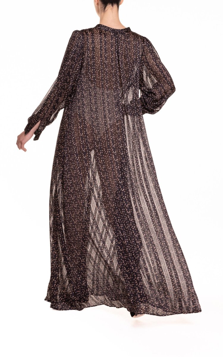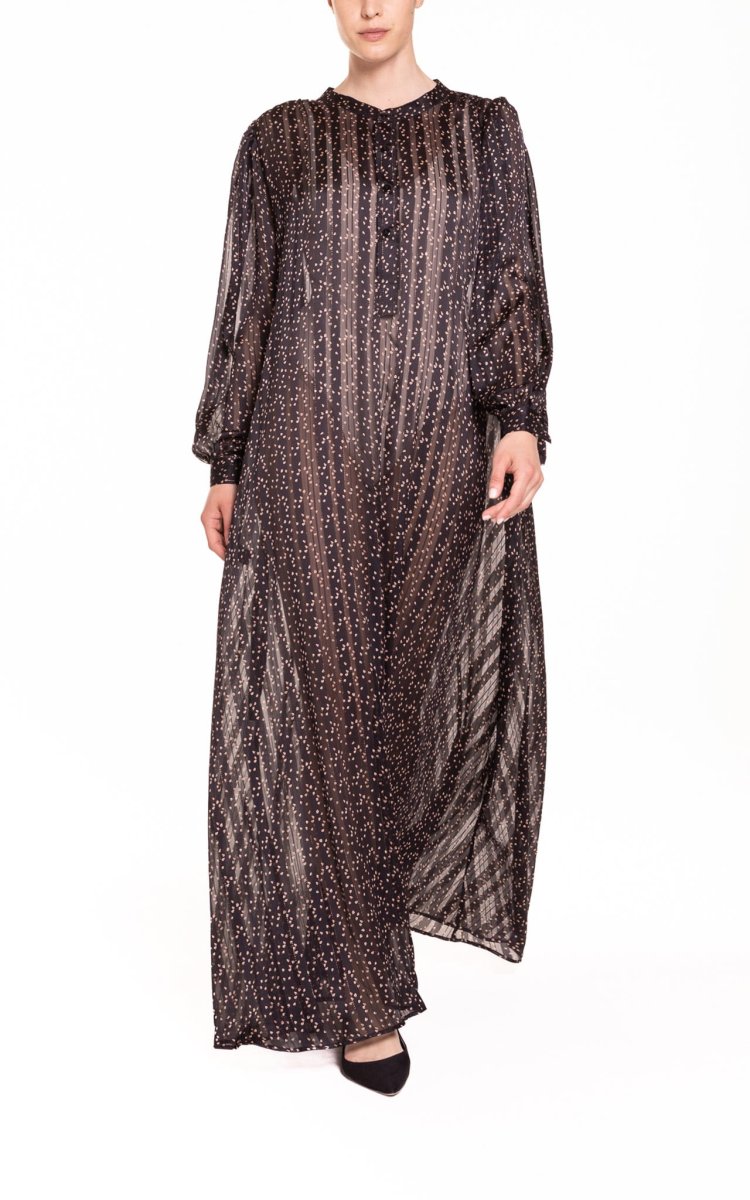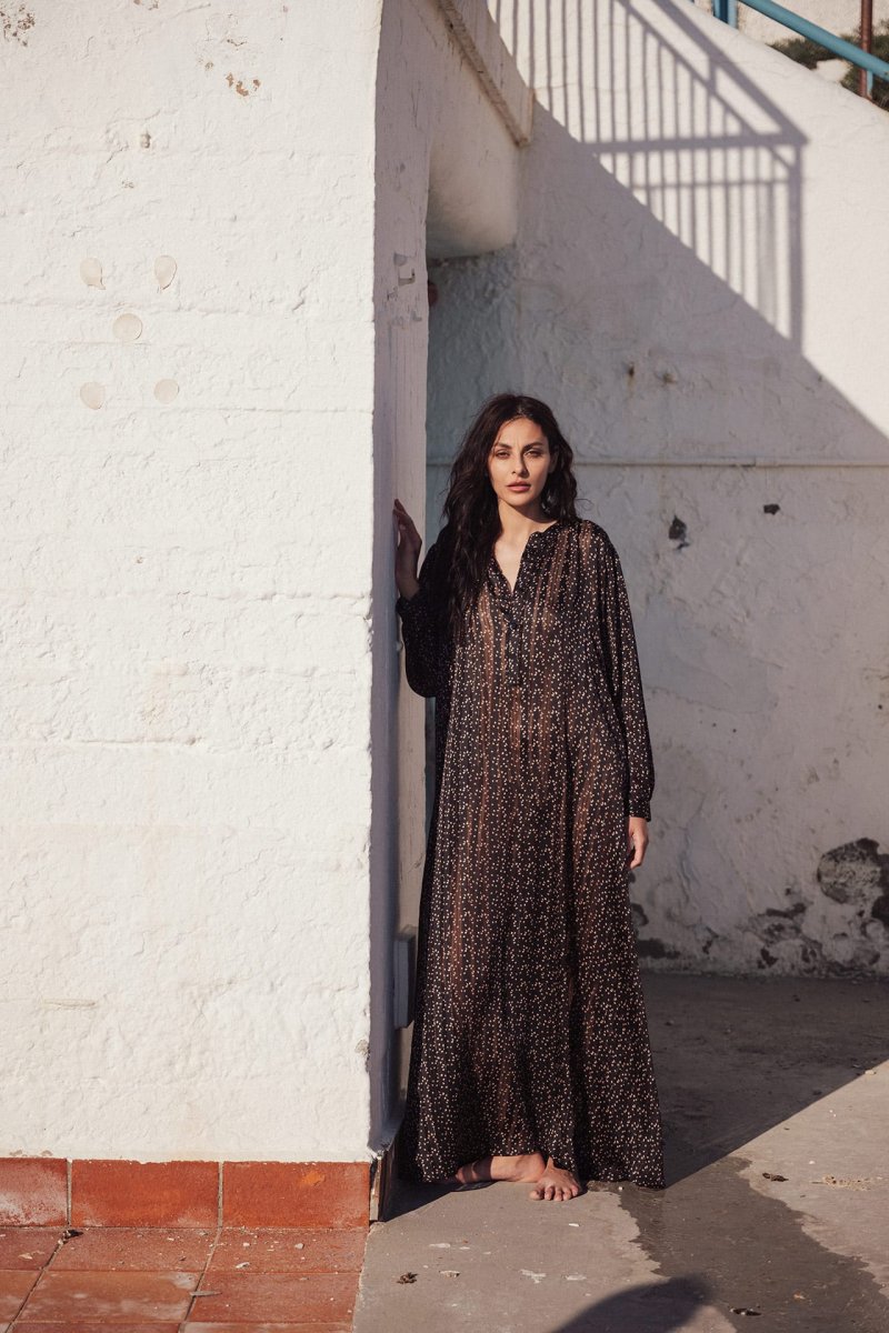 Un caftano leggero, pratico e comodo, in tessuto trasparente, con bottoni frontali, non ha bisogno di essere stirato, diventando dunque lโindumento ideale da mettere in valigia.โจElogia unโeleganza senza tempo che dona a tutte le fisicitร e a tutte lโetร .โจUn vero e proprio passepartout di ogni guardaroba femminile.