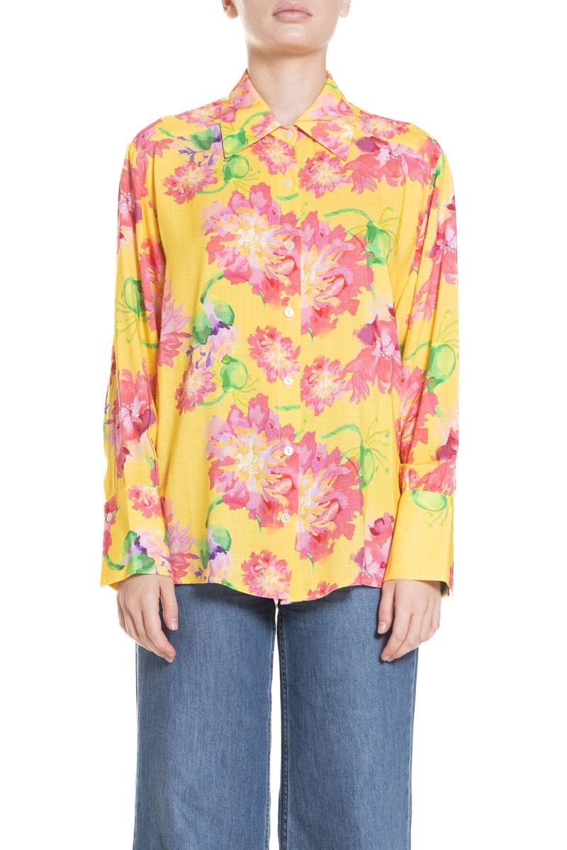 Blusa fantasia con maniche a sbuffo ricamo con ananas