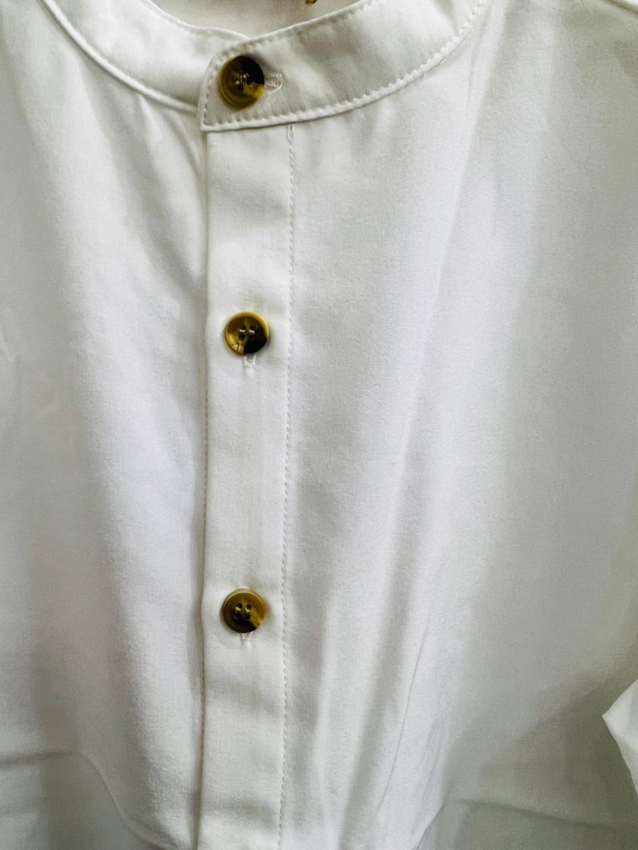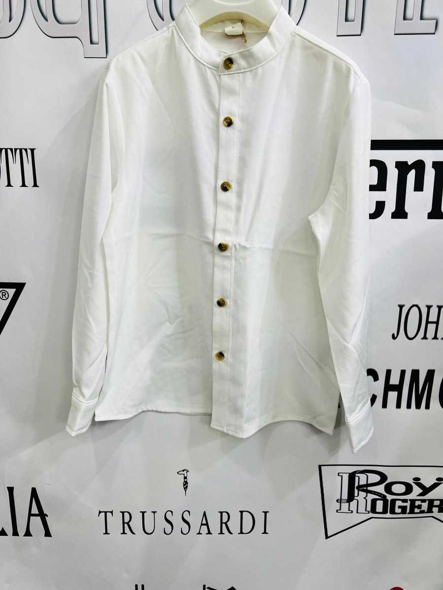 CAMICIA RAGAZZO CAMICIA RAGAZZO manicaย lunga chiusura con bottoni, colletto alla coreana colore: bianco composizione: poliestere ed elastico taglie: dalla 8 anni ala 13-14 anni