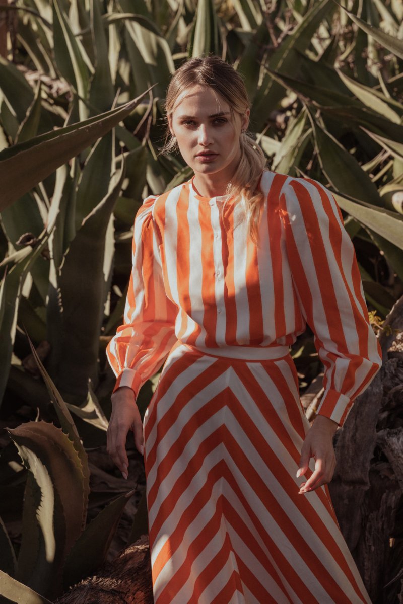 Camicia riga arancio e bianco