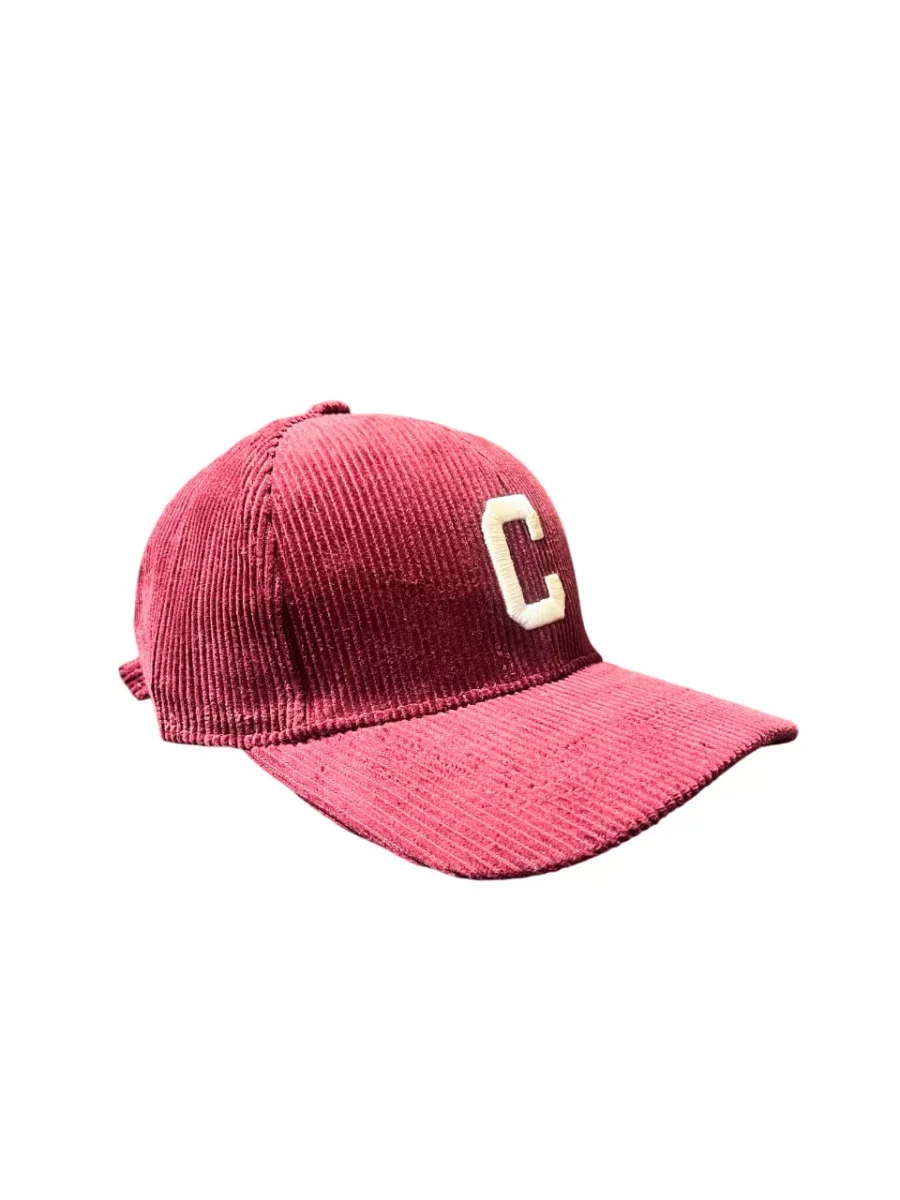 modello cappello con visiera in velluto a coste con ricamo centrale taglia unica stringa regolabile colore marrone,nero,bordeaux,beige composizione 100%cotone made extre eu