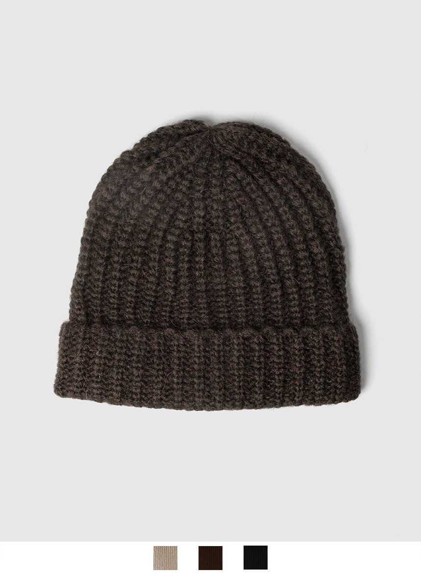 Cappello beanie di maglia in Lana e Alpaca. Questa linea di accessori รจ in coordinato alla serie di capispalla di maglieria Ethical Fur.