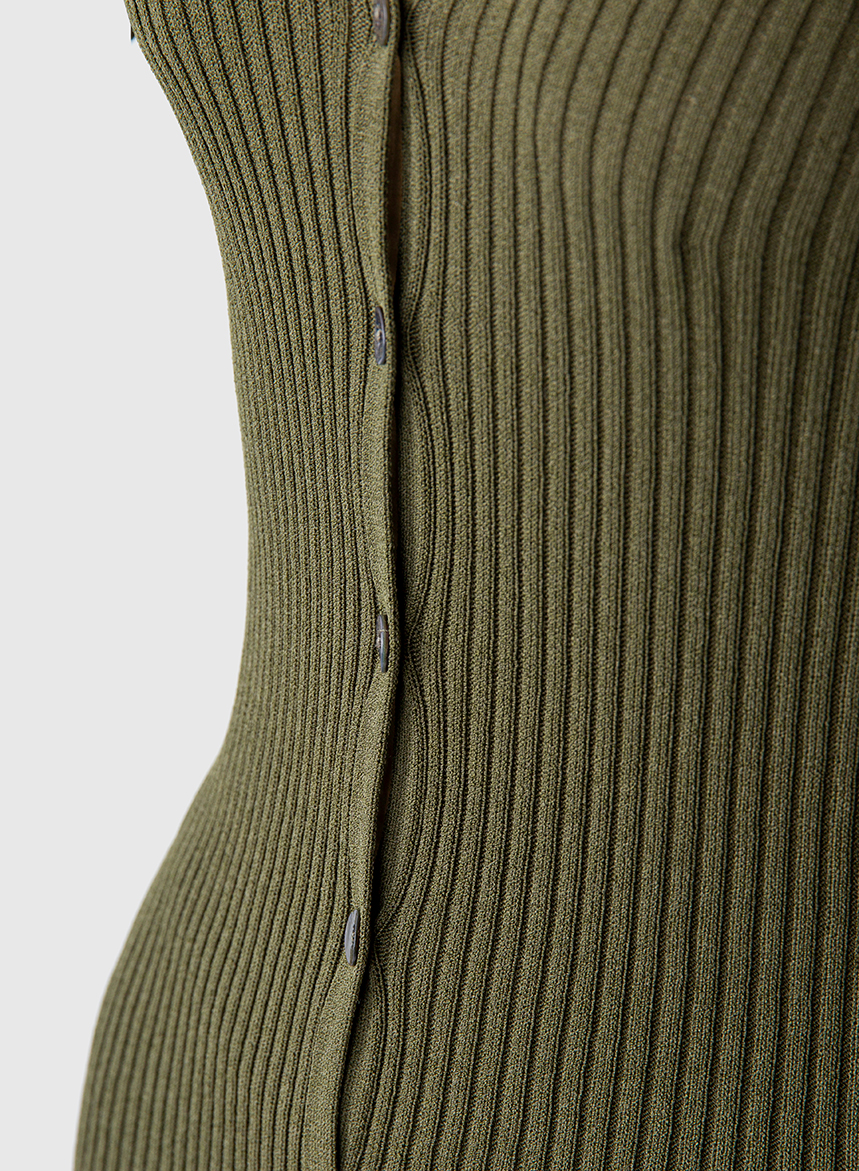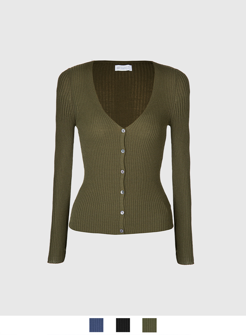 Cardigan di Maglia Coste in Viscosa Stretch – Militare