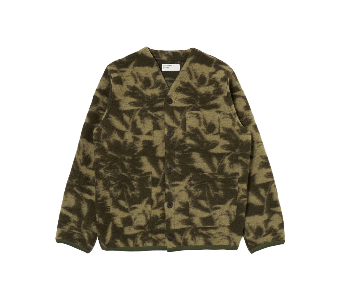Un classico UW, il cardigan facile da indossare ha una parte anteriore con bottoni auto-fissati, tre tasche esterne applicate e una quarta interna. Con polsini e orlo in costina di cotone.