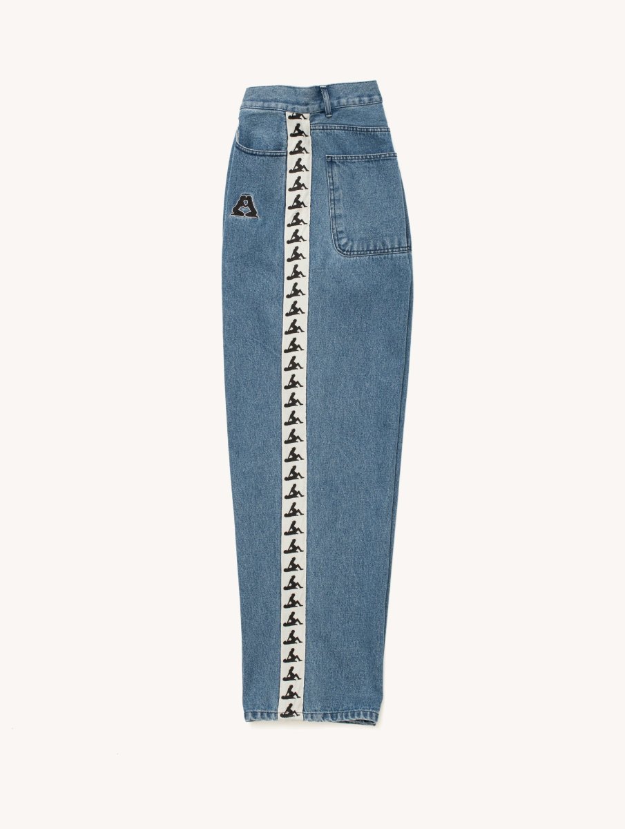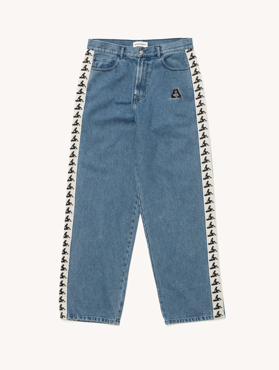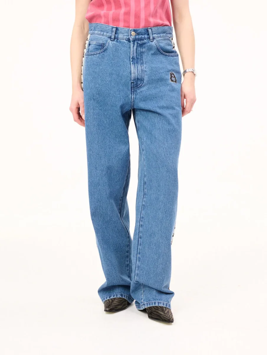 Jeans con chiusura a bottone e zip presenta bande laterali e patch sul fronte. 100% Cotone. Regular fit. AW25DP0302.