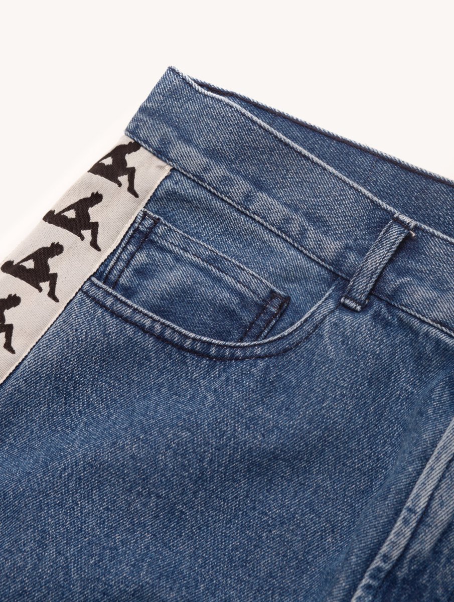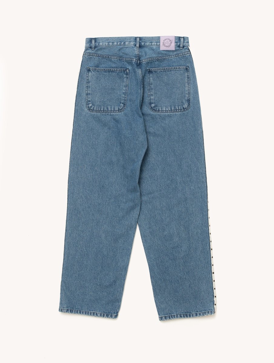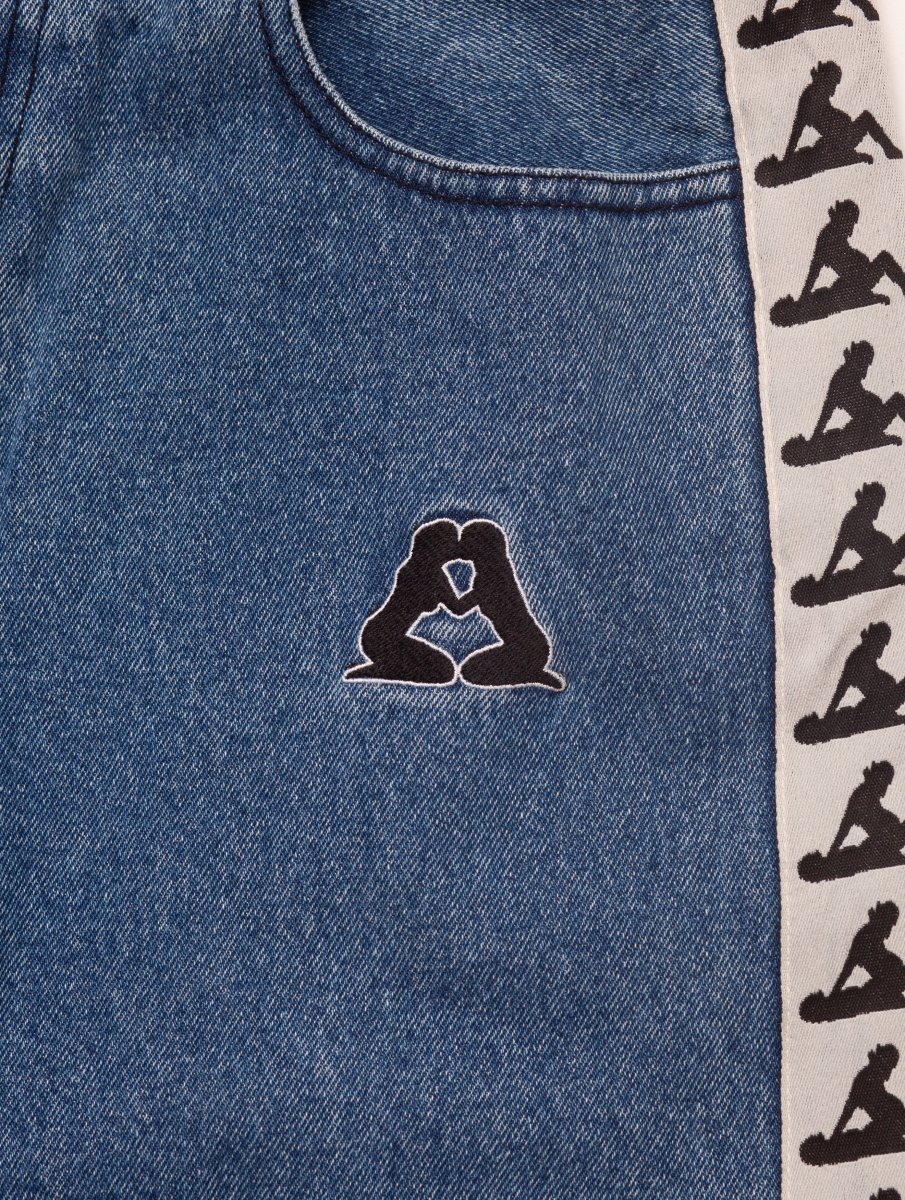 Jeans con chiusura a bottone e zip presenta bande laterali e patch sul fronte. 100% Cotone. Regular fit. AW25DP0302.