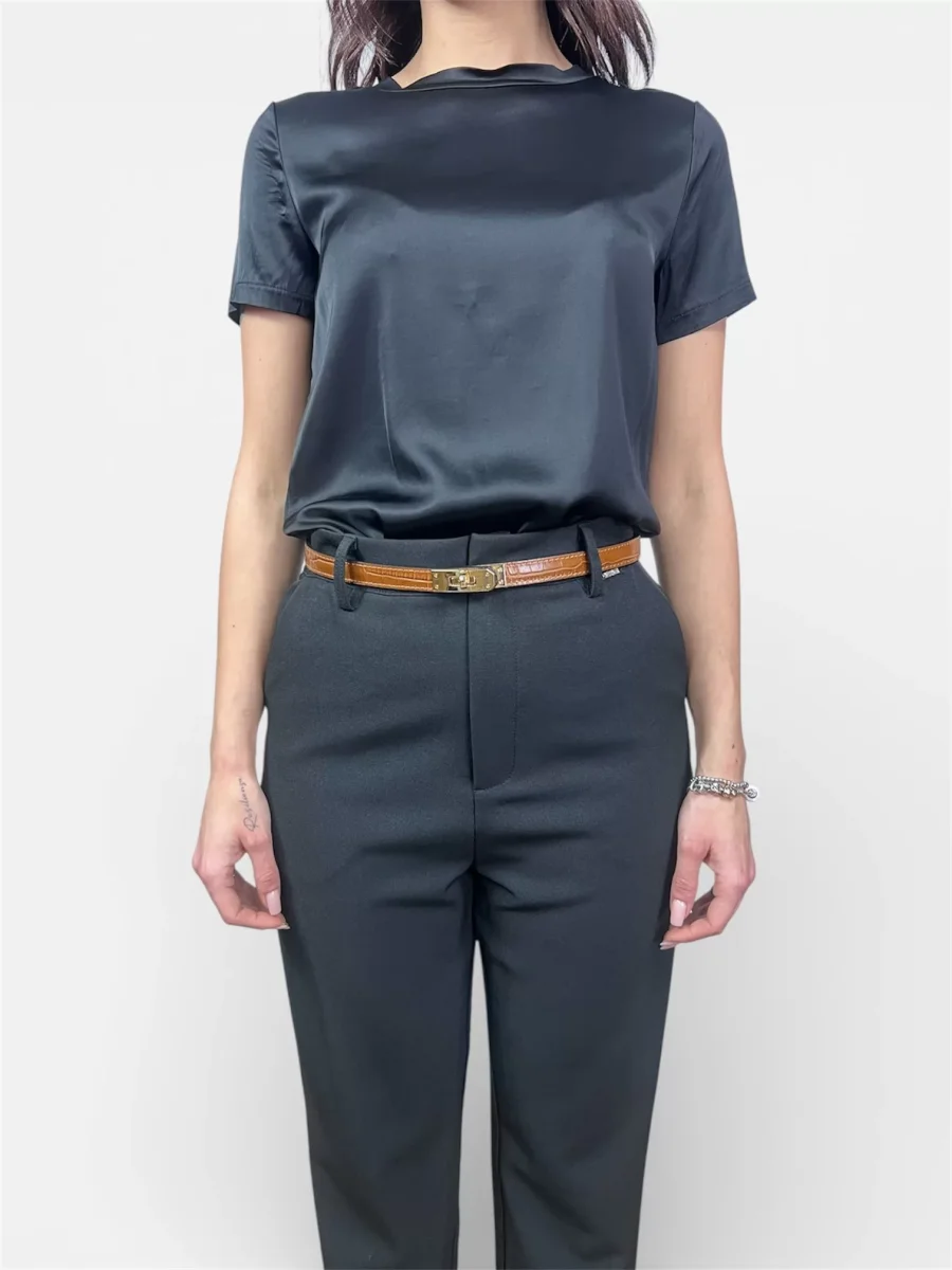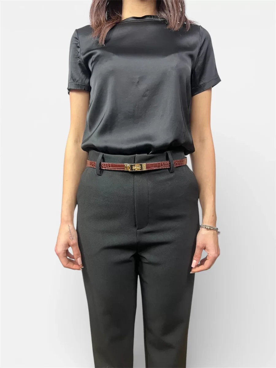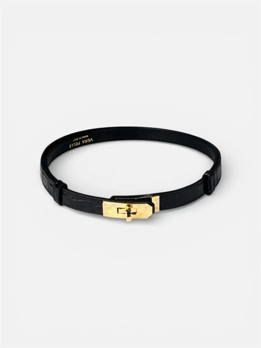 modello cinta fina in vera pelle con chiusura a lucchetto taglia unica regolabile veste dalla taglia 38 alla 50 colori nero,marrone,blu,vino composizione 100%vera pelle MADE IN ITALY questa cinta realizzata artigianalmente rispettando tutti i criteri del made in italy la sua unicitร รจ data dalla possibilitร di essere regolata sia vita alta che vita bassa rendendola unica nel suo genere una cinta per tutti i tuoi look