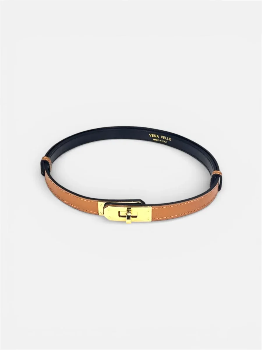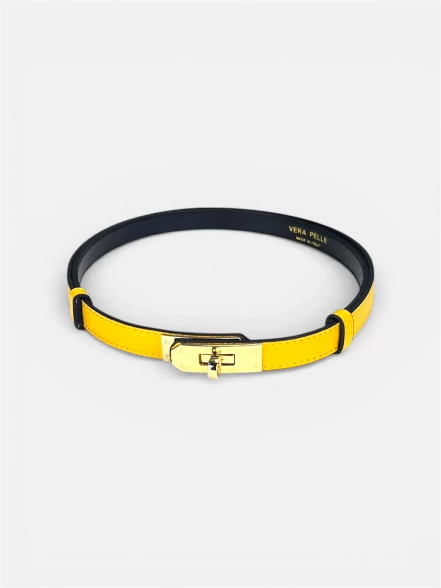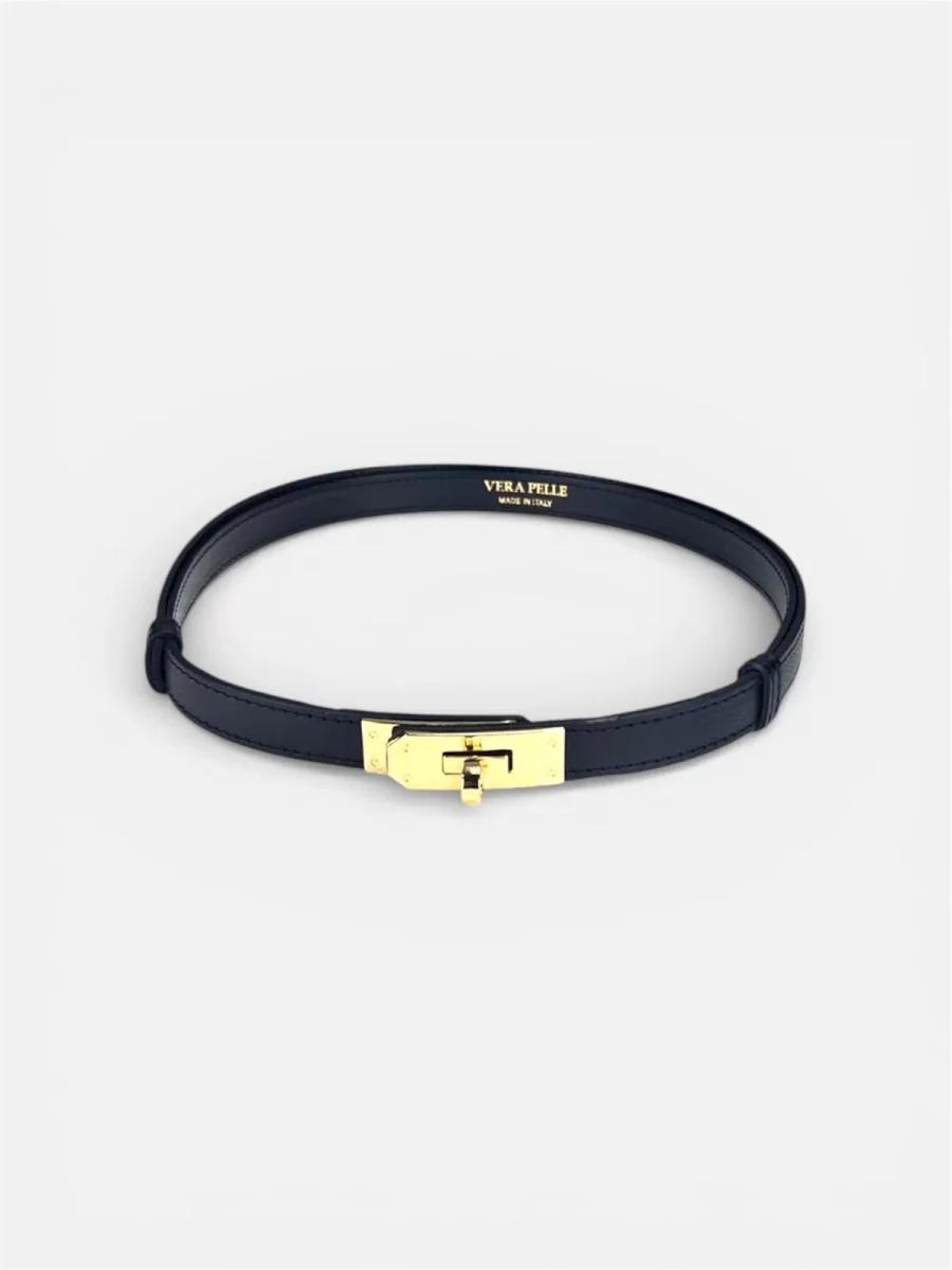 modello cinta fina in vera pelle con chiusura a lucchetto taglia unica regolabile veste dalla taglia 38 alla 50 colori nero,cuoio,militare,sabbia,rosso,giallo composizione 100%vera pelle MADE IN ITALY questa cinta realizzata artigianalmente rispettando tutti i criteri del made in italy la sua unicitร รจ data dalla possibilitร di essere regolata sia vita alta che vita bassa rendendola unica nel suo genere una cinta per tutti i tuoi look