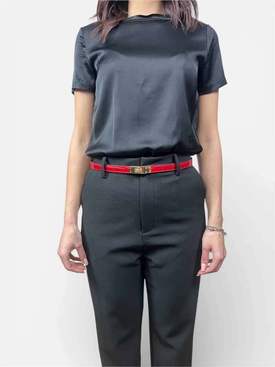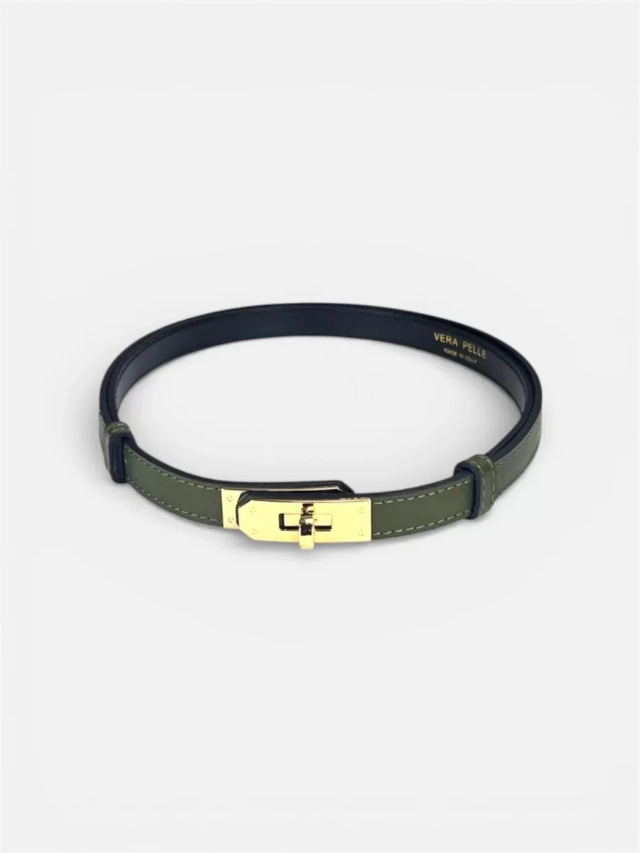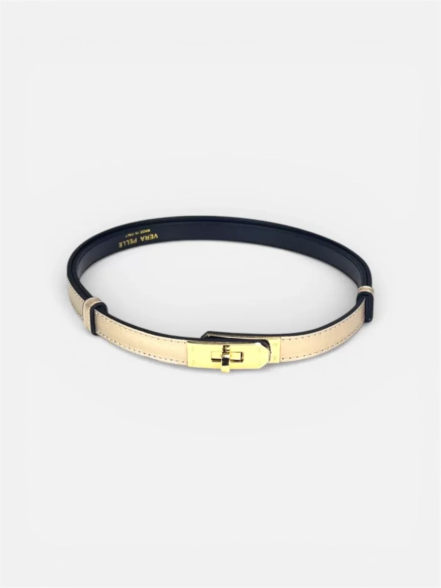 modello cinta fina in vera pelle con chiusura a lucchetto taglia unica regolabile veste dalla taglia 38 alla 50 colori nero,cuoio,militare,sabbia,rosso,giallo composizione 100%vera pelle MADE IN ITALY questa cinta realizzata artigianalmente rispettando tutti i criteri del made in italy la sua unicitร รจ data dalla possibilitร di essere regolata sia vita alta che vita bassa rendendola unica nel suo genere una cinta per tutti i tuoi look