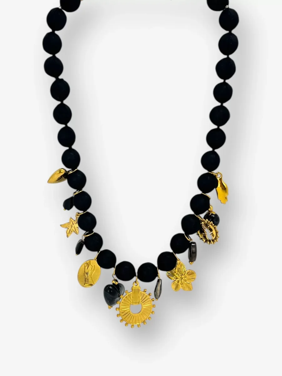 Collana sfere ciondoli nero,salvia,beige,vino by MYRA