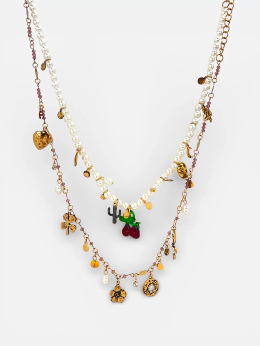 Il design si caratterizza per un raffinato gioco di volumi, con sfere rivestite in pregiato tessuto nylon che offrono una texture morbida e contemporanea. Ad impreziosire il gioiello, una selezione di ciondoli in acciaio dorato dalle forme variegate – come fiori finemente lavorati, cuori ed elementi botanici – che donano punti di luce calda senza tempo. La pratica chiusura a moschettone, anch’essa in acciaio dorato, assicura una vestibilità perfetta e sicura. Stile: Girocollo moderno con charms pendenti. Materiali: Sfere in nylon, ciondoli e finiture in acciaio dorato. Chiusura: Moschettone robusto e facile da regolare. Colori Disponibili: Beige, Nero, Vino (Bordeaux) e Salvia. Origine: 100% Made in Italy.…