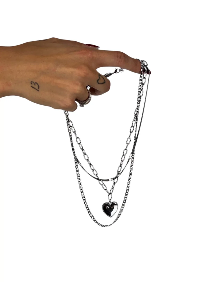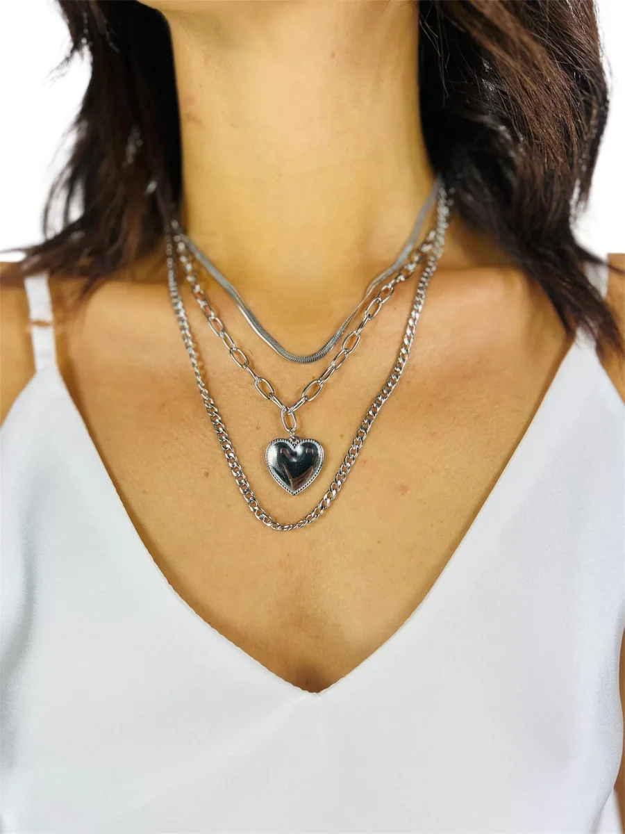 modello collana cuore argento 3 fili acciaio catenina regolabile di lunghezza