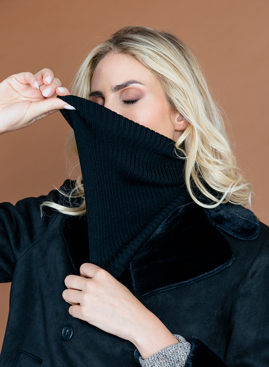 Scaldacollo di maglia a coste in pura Lana Merinos RWS extrafine. Spessore di maglia medio a 2 fili di lana. I capi etichettati Responsible Wool Standard ยฎ sono prodotti con fibre certificate di lana proveniente da allevamenti gestiti in modo responsabile, nel rispetto del benessere animale e per la riduzione dellโimpatto ambientale.