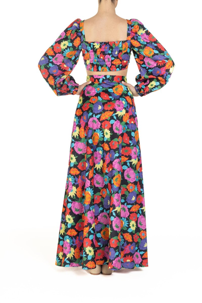 Blusa con maniche a sbuffo fantasia multicolor