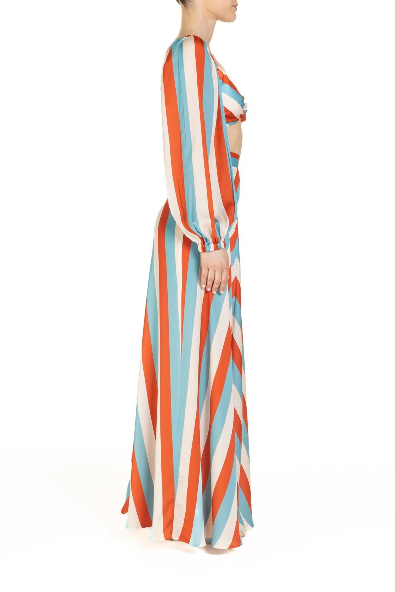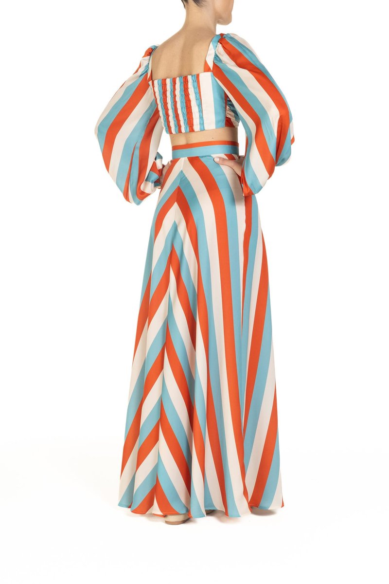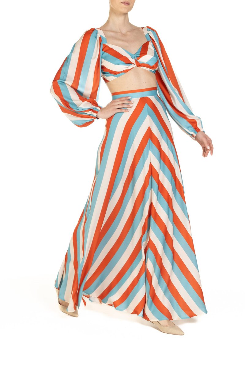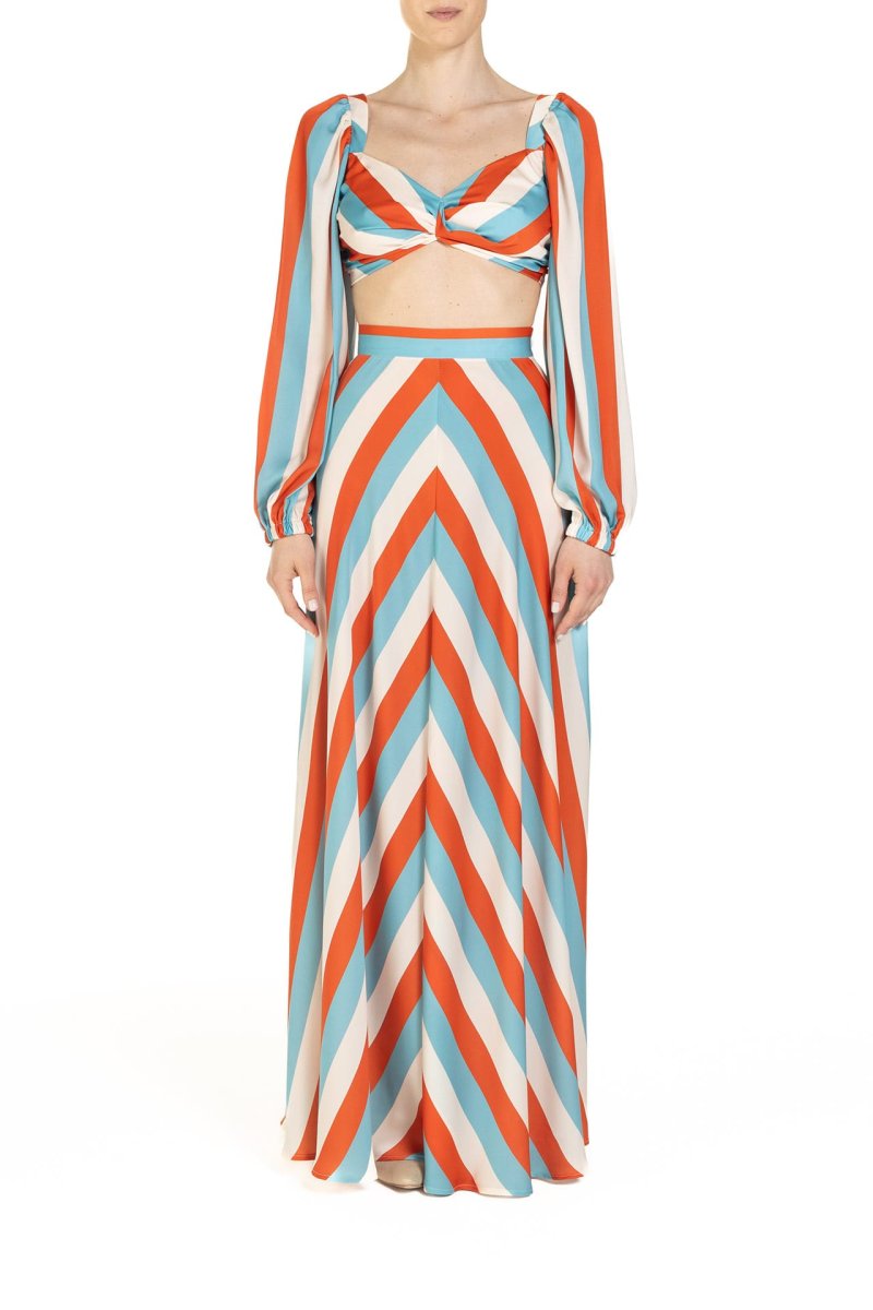 Crop top Riga Celeste Arancio e Panna