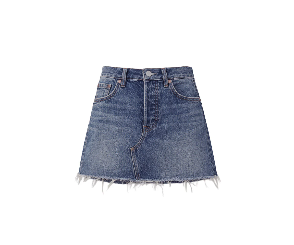 Anche se รจ di piccole dimensioni, questo modello ti consentirร di fare un figurone. La gonna Deconstructed presenta un taglio a metร coscia e un orlo grezzo per un tocco di carattere in piรน.