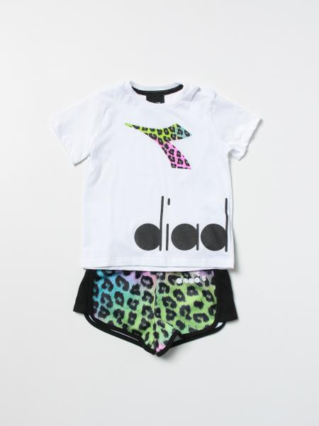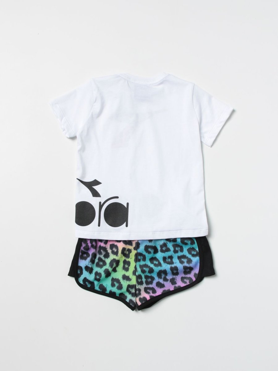 DIADORA COMPLETO DIADORA COMPLETO composto da t-shirt mezza manica girocollo, stampa centrale. e shorts con elastico in vita e logo colore: bianco multicolor taglia: dalla 9 mesi alla 30 mesi composizione:ย cotone