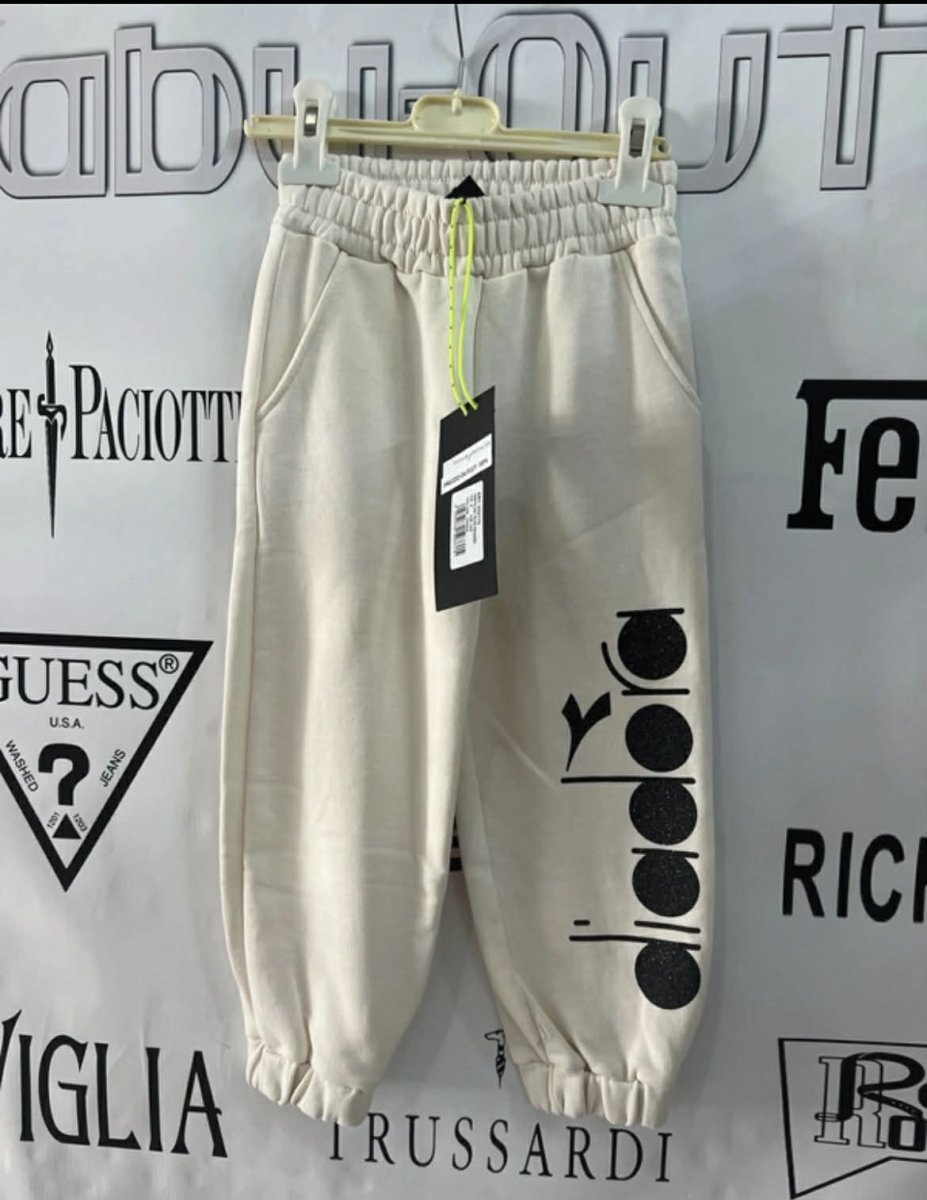 DIADORA PANTALONE DIADORA PANTALONE lungo elastico in vita. logo gamba il LUREX, felpato all’interno colore: panna taglia: dalla 4 anni alla 12 anni composizione: cotone