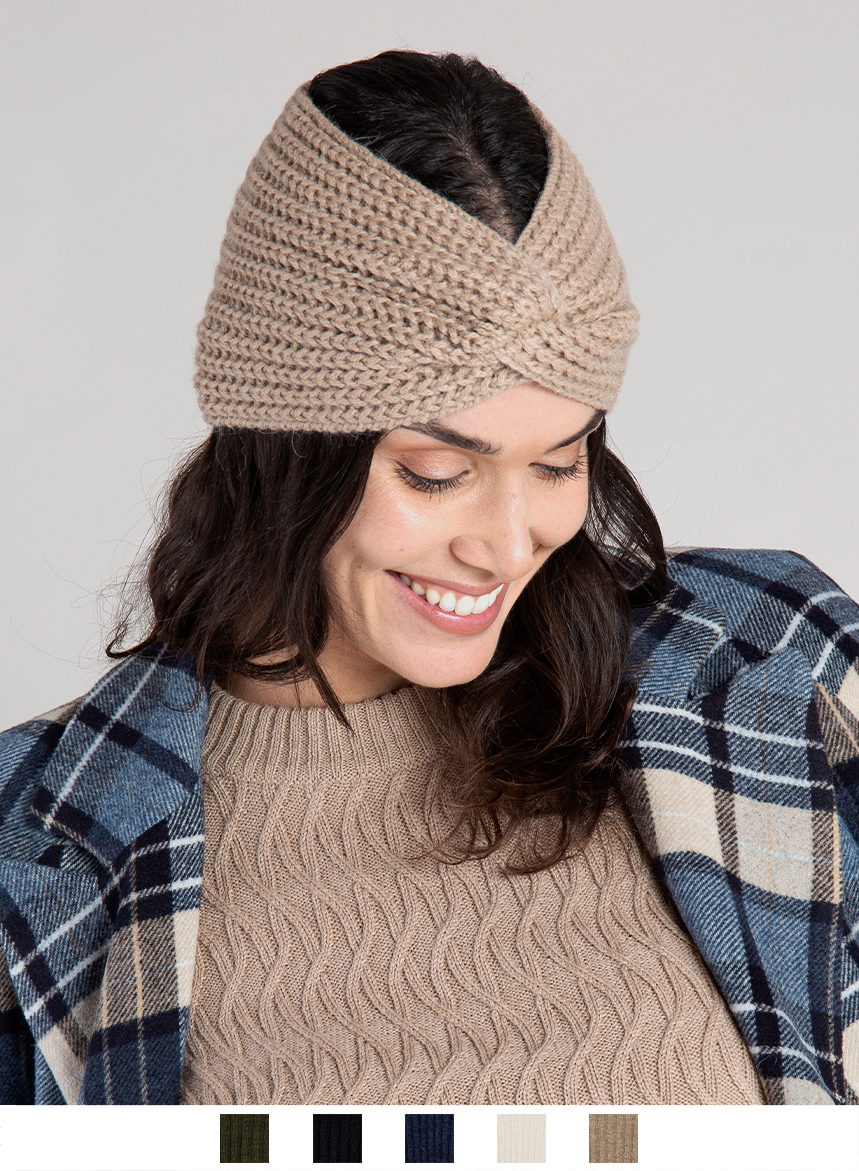 Fascia per capelli di maglia in alpaca superfine e lana merinos. I capi etichettati Alpaca Blend ยฎ sono prodotti con le fibre piรน pregiate di Alpaca Peruviana, che si distingue per l’eccezionale morbidezza, leggerezza e vestibilitร ; nonchรจ per le straordinarie proprietร termiche. La modella รจ alta 180 cm e veste una taglia Unica.