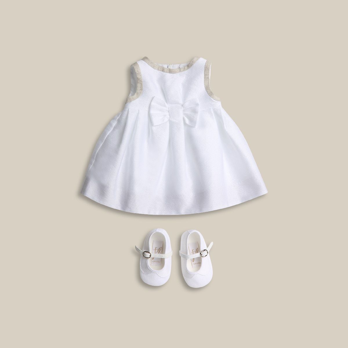FEFè ABITO NEONATA FEFè ABITO NEONATA giro manica con chiusura sul retro con zip. fiocco sul davanti. foderato all’interno. nb scarpette e coprispalle NON COMPRESO colore: bianco rifiniture in marroncino taglia: dalla 6 mesi alla 24 mesi composizione: 95% cotone 5% poliestere
