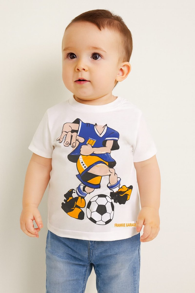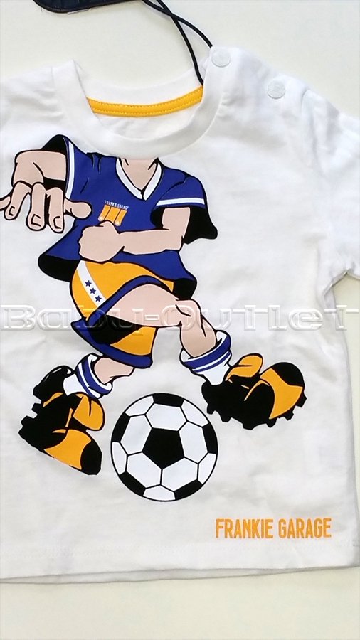 FRANKIE GARAGE T-SHIRTย NEONATO FRANKIE GARAGE T-SHIRTย NEONATO manica cortaย e girocollo, stampaย sulla t-shirt. chiusura sul lato collo con bottoncini a clips Colore: bianco Taglia: 6 mesi e 9 mesi Composizione: 100% cotone