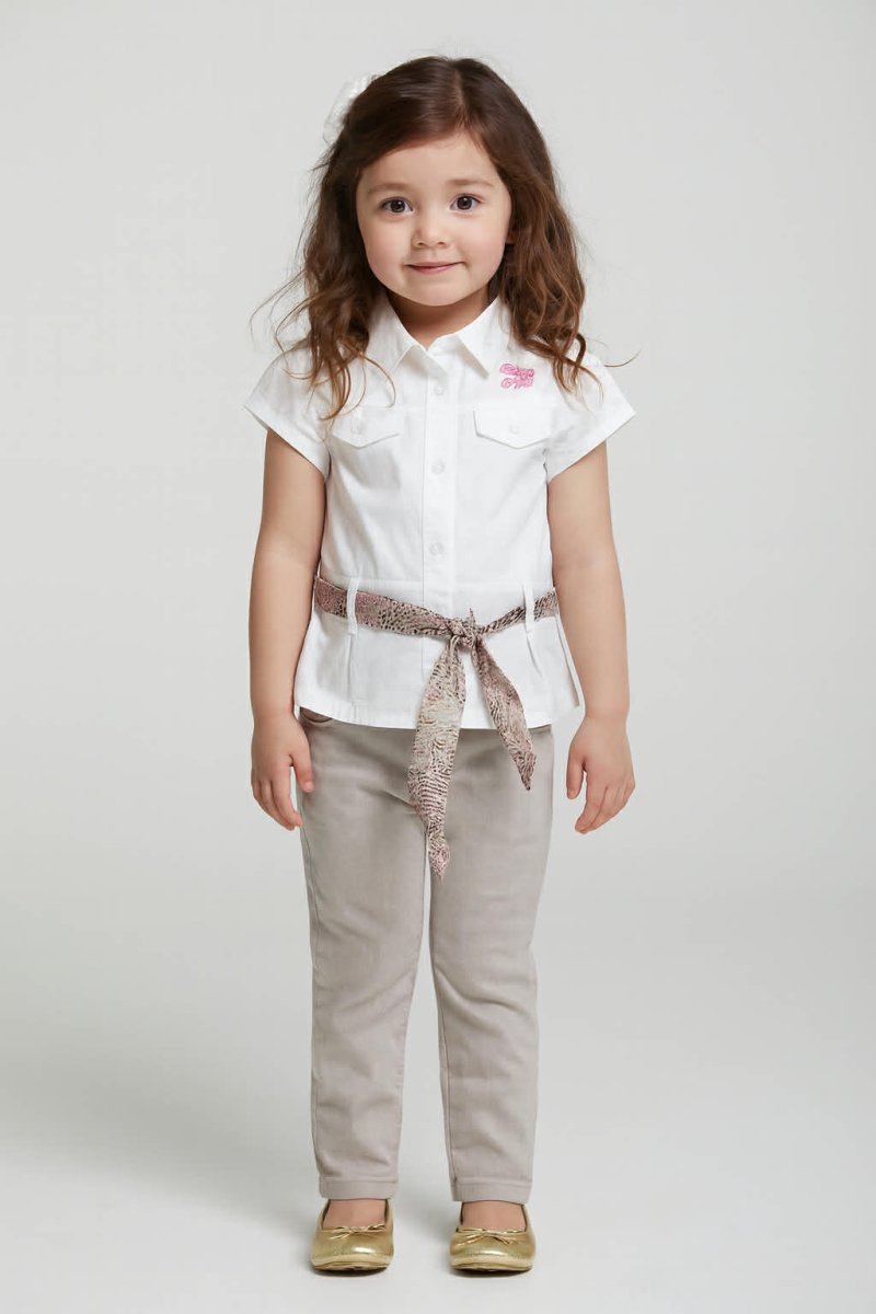 FUN&FUN CAMICIA NEONATA FUN&FUN CAMICIA NEONATA chiusura con bottoni, manica corta, cintura in chiffon, logo e finti taschini sul petto taglia:ย 2 anni, 6 anni e 7 anni colore: bianco