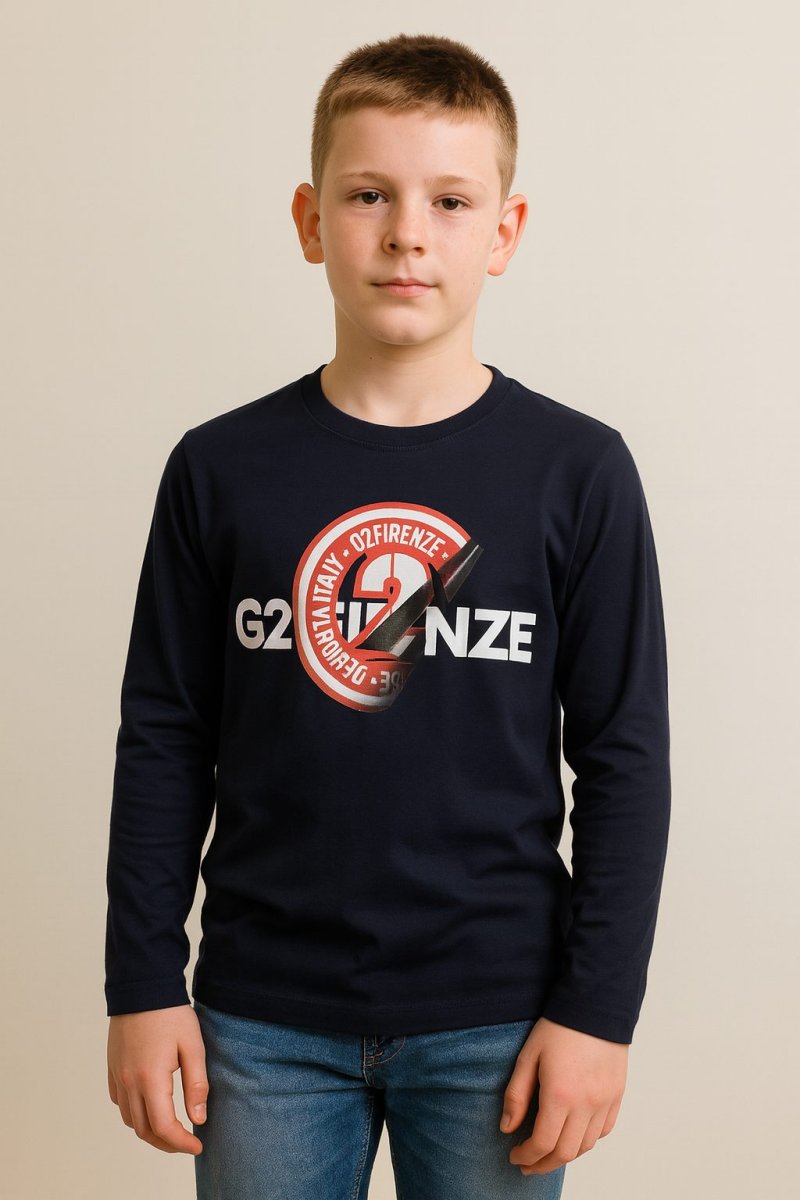 G2FIRENZE T-SHIRT G2FIRENZE T-SHIRT manica lunga e girocollo, logo centrale colore: blu taglia: dalla 2 anni alla 16 anni composizione: cotone
