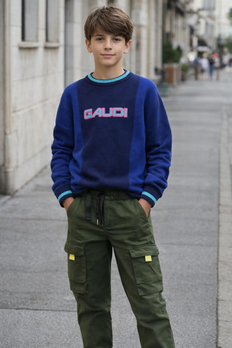 GAUDI’ PULLOVER GAUDI’ PULLOVER manica lunga e girocollo, logo centrale colore: blu composizione: cotone taglia: dalla 8 anni alla 16 anni