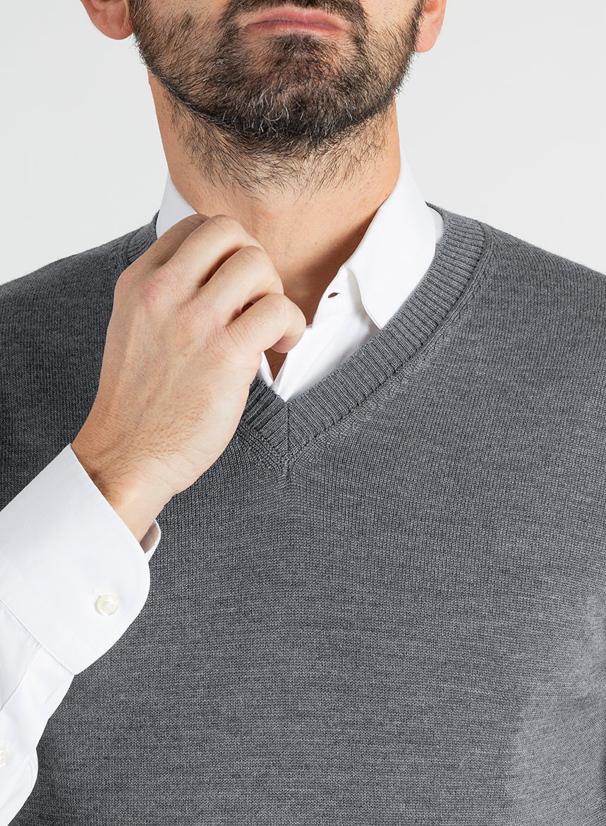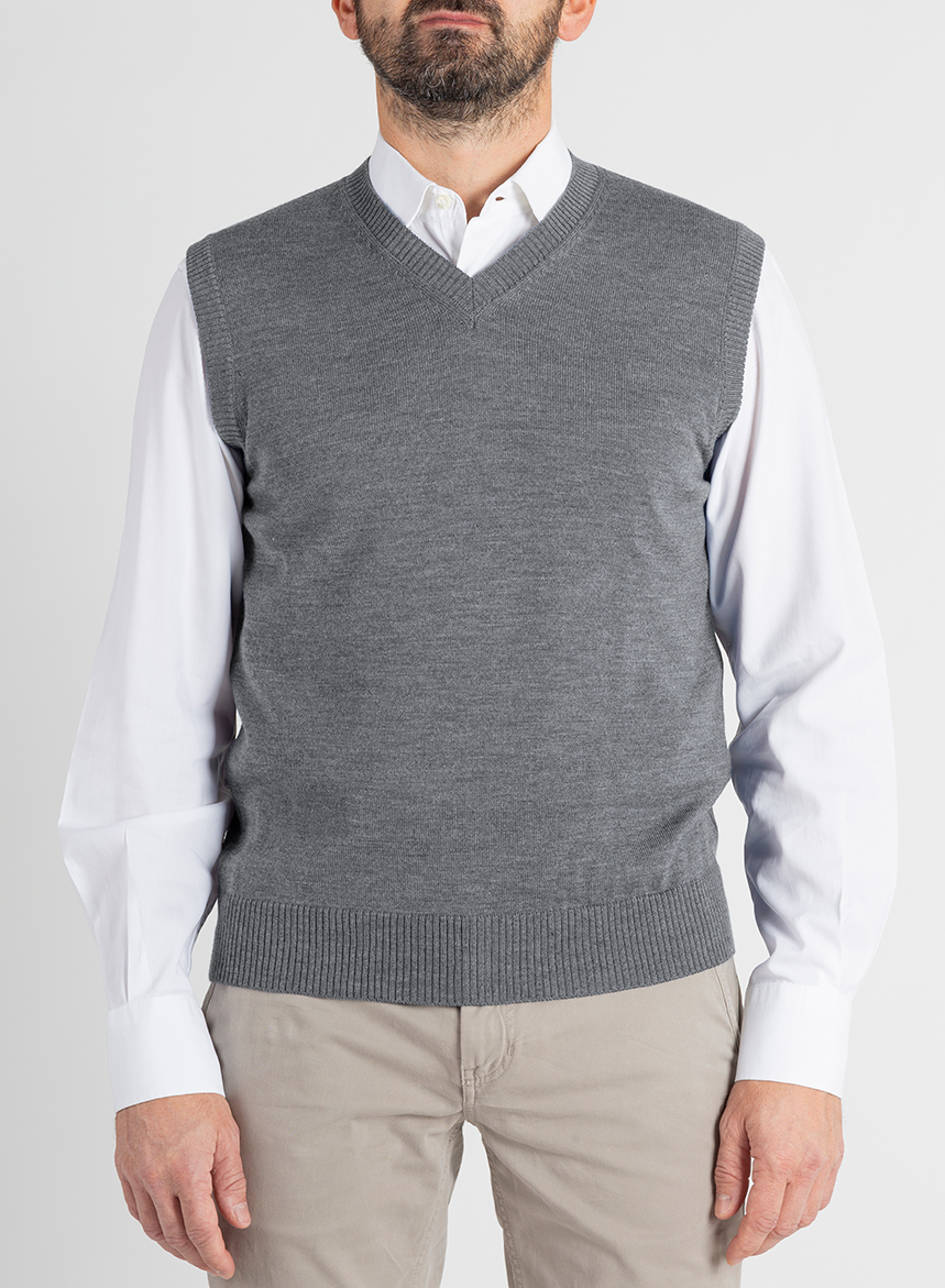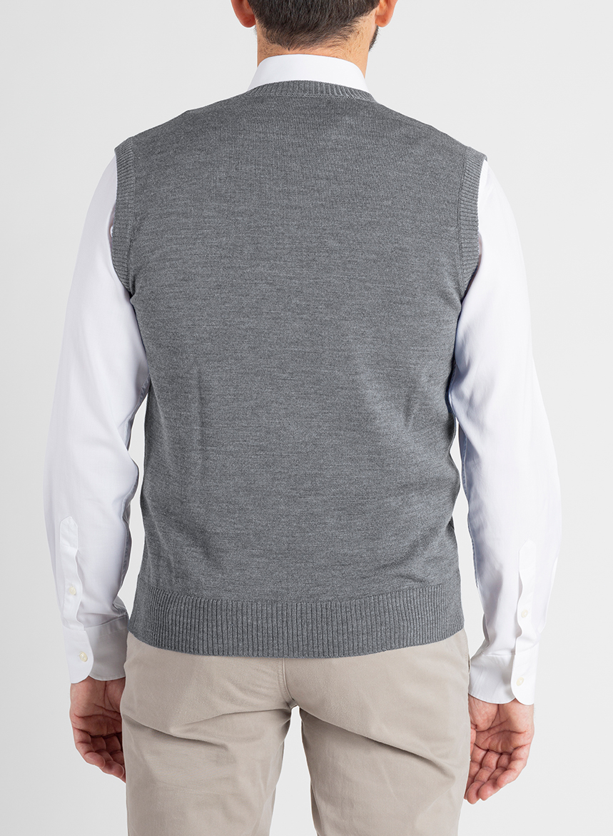 Gilet di maglia con scollatura a V in pura lana merinos extrafine certificata RWS. Maglia rasata di medio spessore profili ed inizi alti in costa. Vestibilitร Regular fit. Il modello indossa una Taglia 48 ed รจ alto 175 cm. Se non รจ disponibile la tua taglia scrivici a [email protected] o rivolgiti al nostro personale in Boutique. Se avremo disponibilitร di filato, produrremo per te la tua maglia.