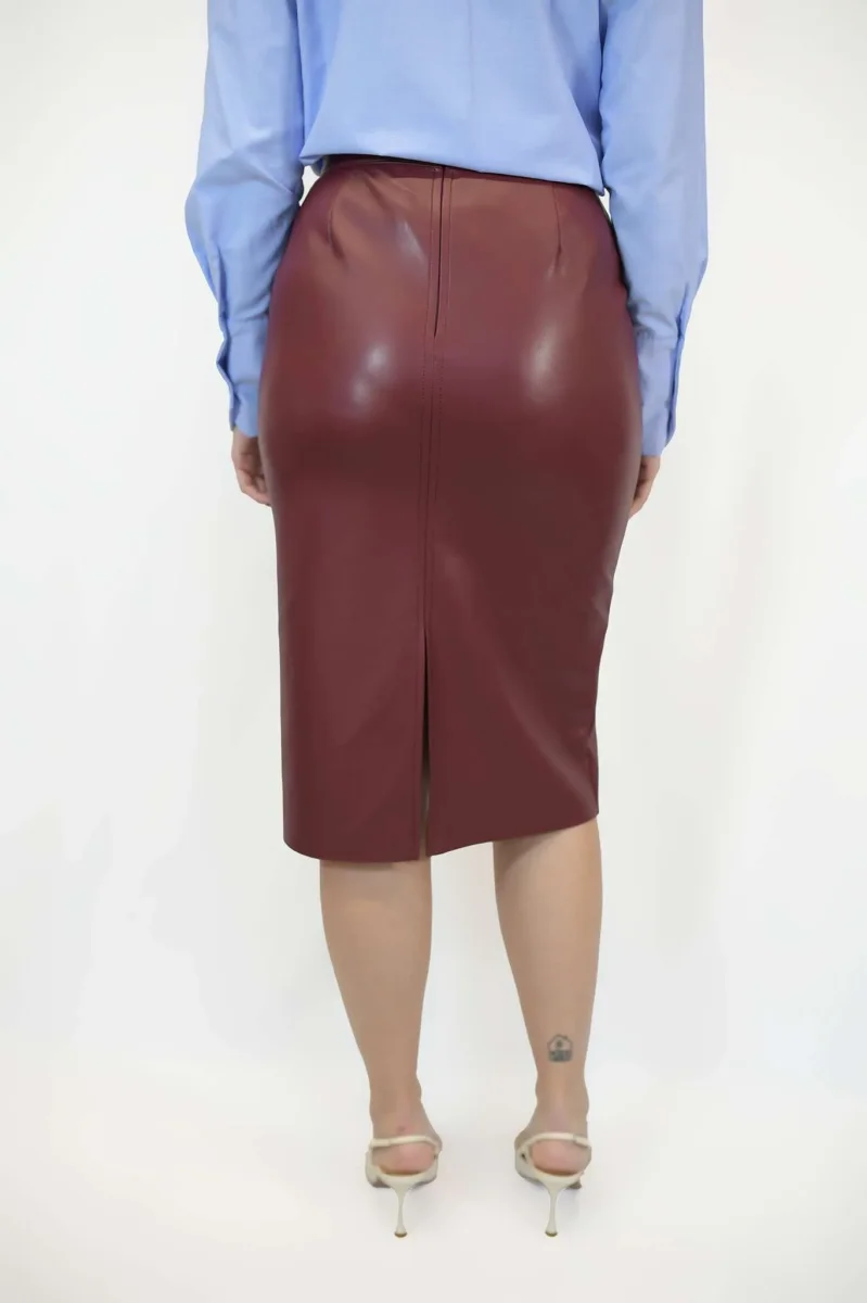 Gonna a matita in ecopelle, dal carattere deciso e contemporaneo, con lunghezza al ginocchio ideale per un look femminile ed elegante. Realizzata in ecopelle morbida ed elasticizzata, assicura una vestibilitร confortevole valorizzando la silhouette senza costringere.