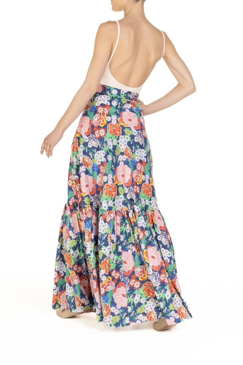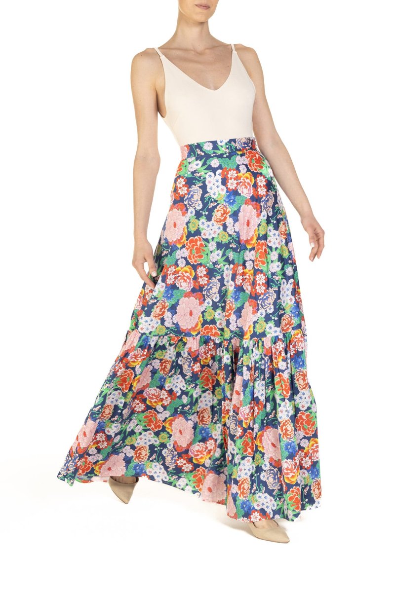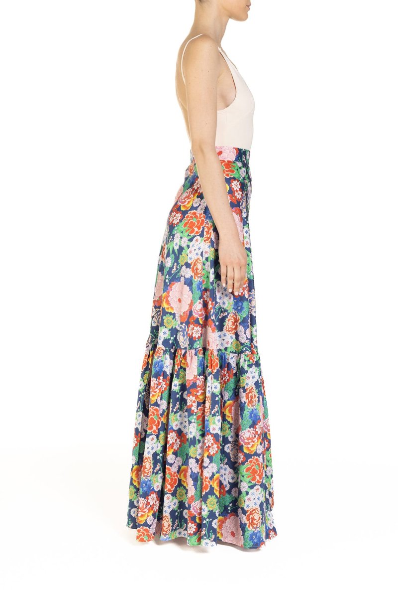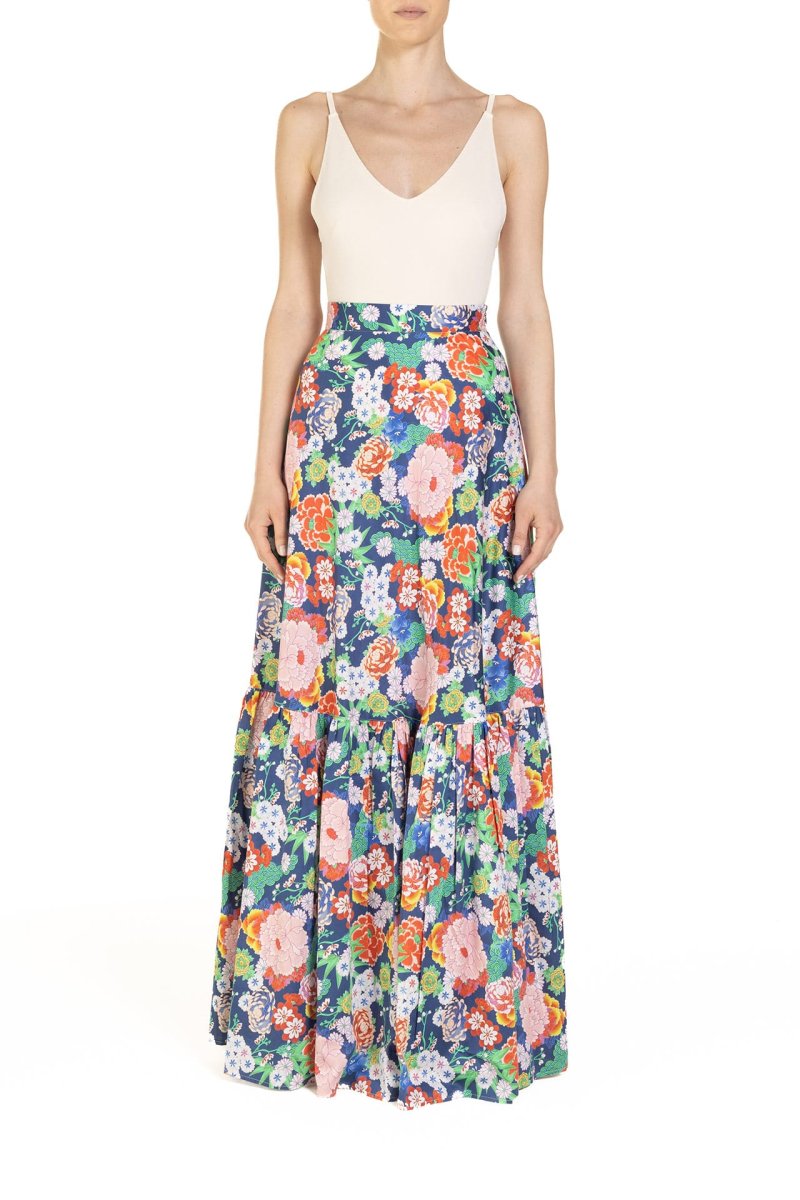Gonna a ruota con balza Fantasia Peonie