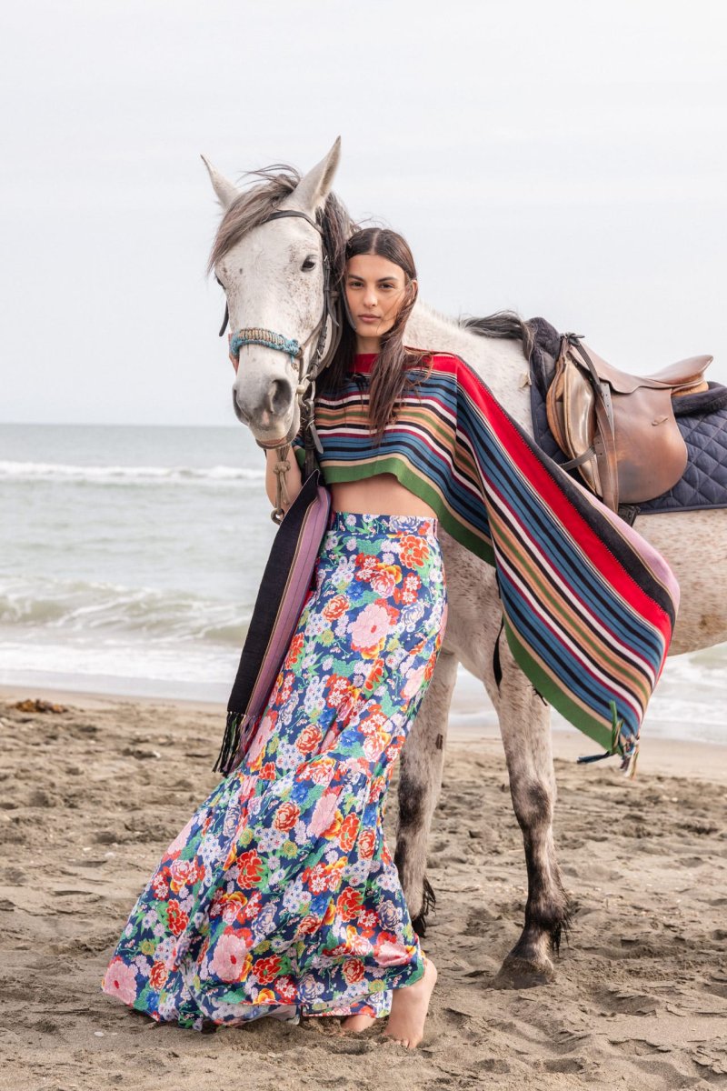 Gonna super femminile e senza tempo con vita alta e balza finale.Perfetta da abbinare ad una semplice camicia o ad un top dello stesso tessuto, per un look romantico o per unโoccasione speciale. Con una vestibilitร ampia e morbida, questo capo รจ un connubio di raffinatezza e stile classico, che vi farร sentire a vostro agio sempre e comunque.